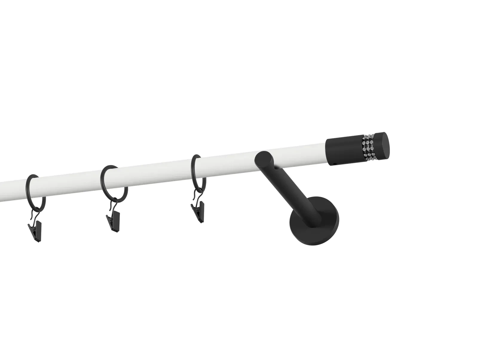 Jednoradová garniža s povrchovou úpravou - bielo čierna lakovaná. Garniže sú dodávané sú v kompletoch. Tvar koncovky a typ držiaka podľa zadaného výberu.