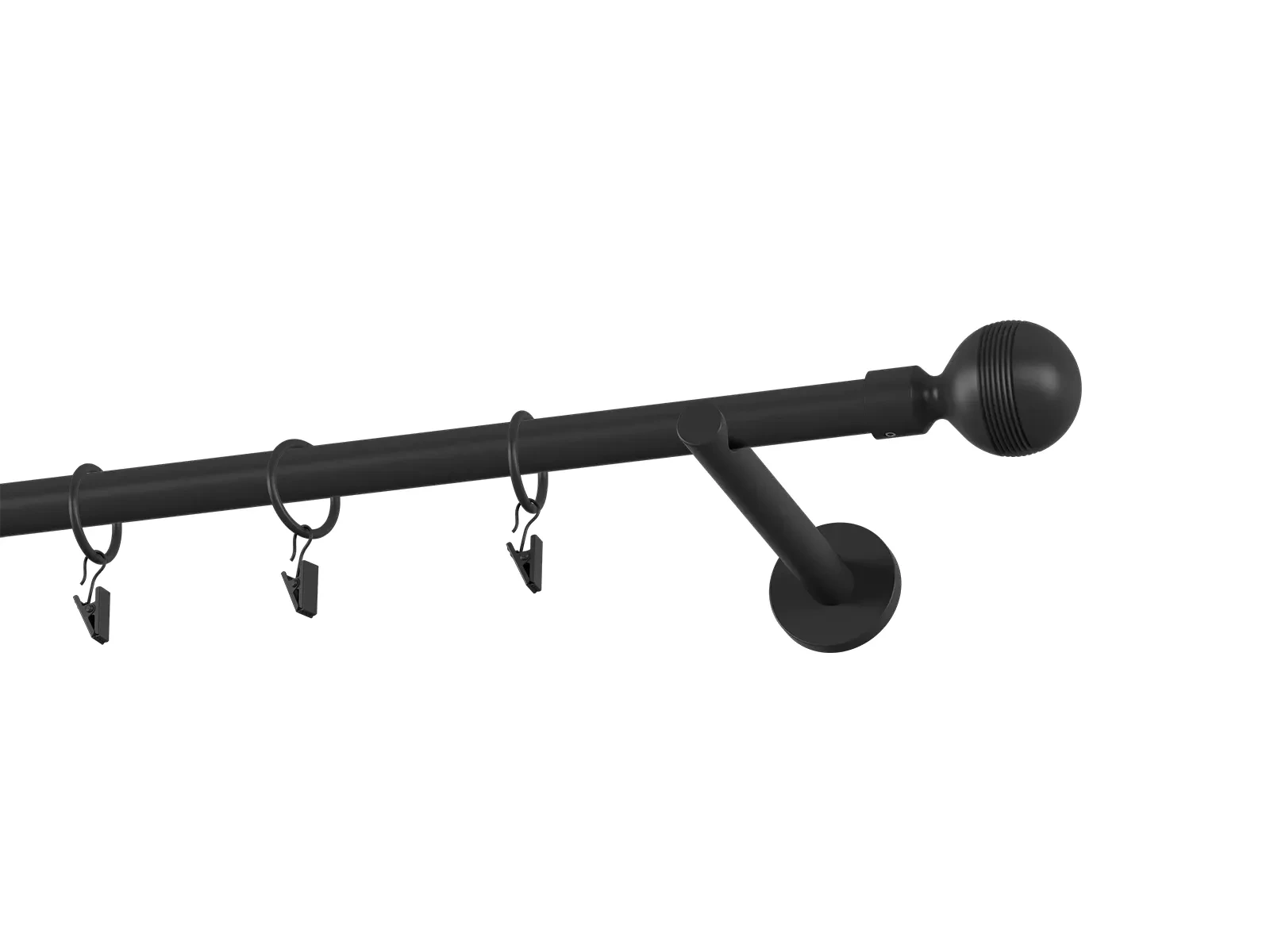 Jednoradová garniža s povrchovou úpravou - čierna lakovaná. Garniže sú dodávané sú v kompletoch. Tvar koncovky a typ držiaka podľa zadaného výberu.