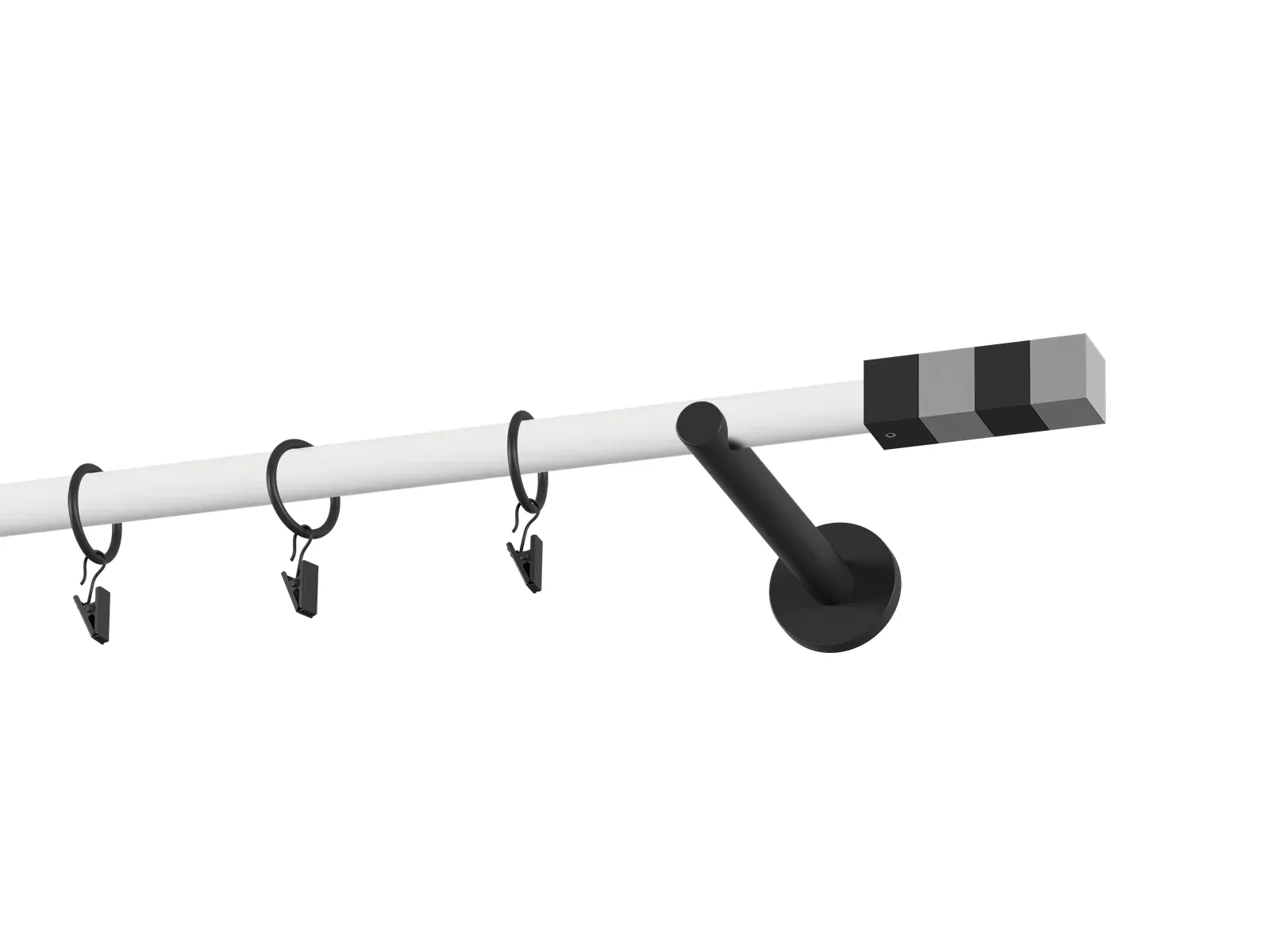 Jednoradová garniža s povrchovou úpravou - bielo čierna lakovaná. Garniže sú dodávané sú v kompletoch. Tvar koncovky a typ držiaka podľa zadaného výberu.
