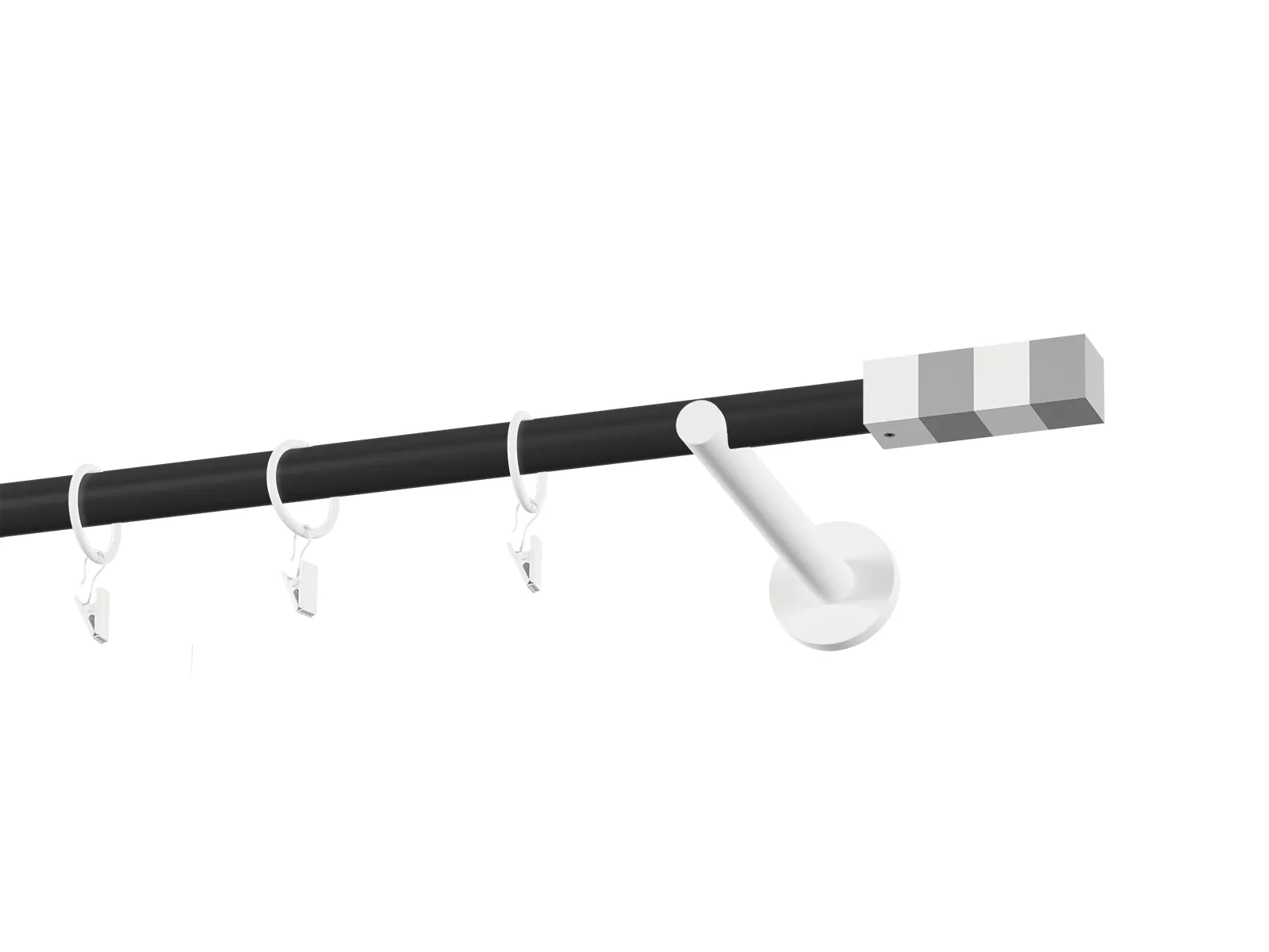 Jednoradová garniža s povrchovou úpravou - čierno biela lakovaná. Garniže sú dodávané sú v kompletoch. Tvar koncovky a typ držiaka podľa zadaného výberu.