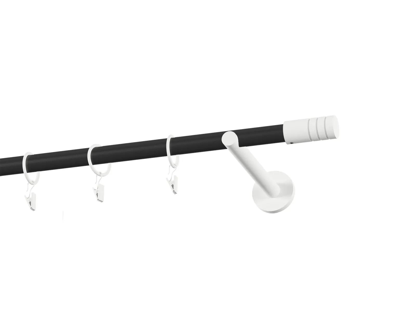 Jednoradová garniža s povrchovou úpravou - čierno biela lakovaná. Garniže sú dodávané sú v kompletoch. Tvar koncovky a typ držiaka podľa zadaného výberu.