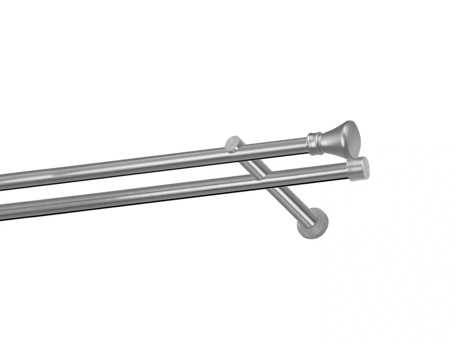 Dvojradová garniža s povrchovou úpravou - odtieň satin-nikel (matné striebro). Celokovové garniže s kvalitnou povrchovou úpravou - galvanické pokovovanie. Galvanické pokovovanie zabezpečuje vyššiu povrchovú tvrdosť, zvýšenú dolnosť voči poškriabaniu, hladký povrch. Dodávané sú v kompletoch.