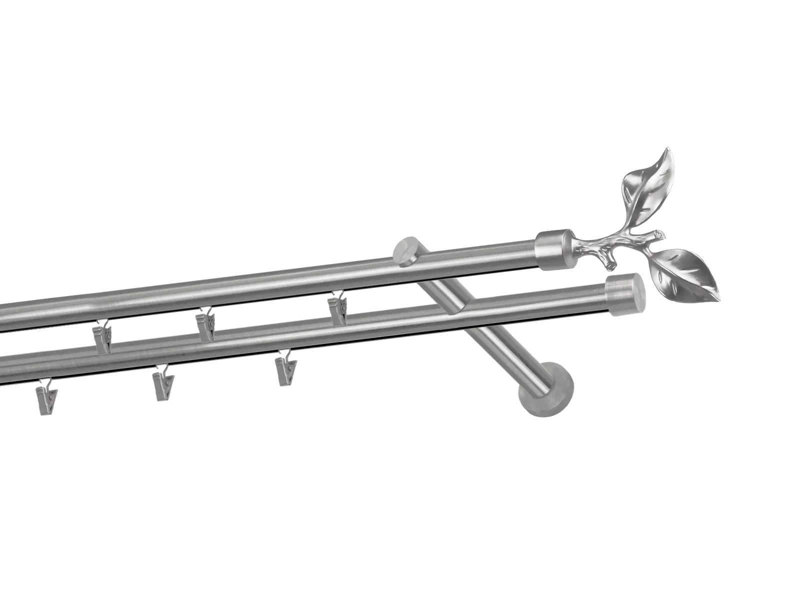 Dvojradová garniža s povrchovou úpravou - odtieň satin-nikel (matné striebro). Celokovové garniže s kvalitnou povrchovou úpravou - galvanické pokovovanie. Galvanické pokovovanie zabezpečuje vyššiu povrchovú tvrdosť, zvýšenú dolnosť voči poškriabaniu, hladký povrch. Dodávané sú v kompletoch.