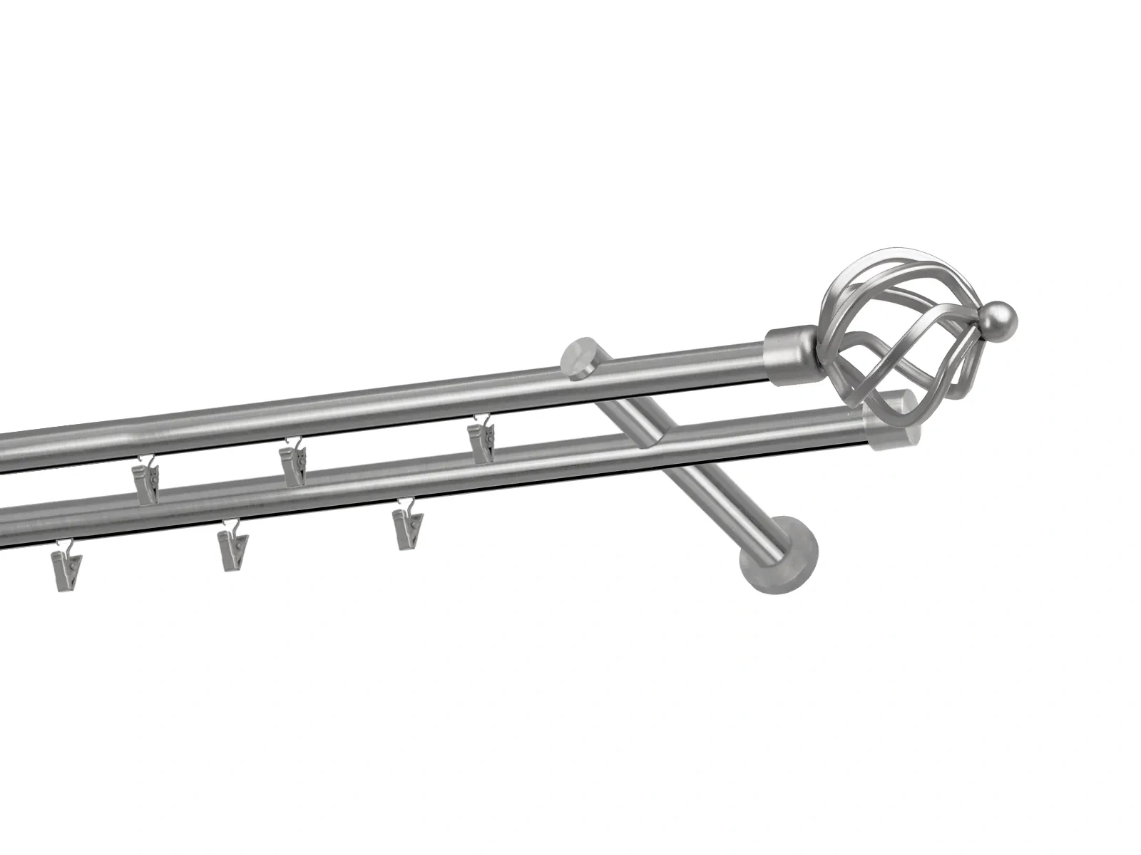 Dvojradová garniža s povrchovou úpravou - odtieň satin-nikel (matné striebro). Celokovové garniže s kvalitnou povrchovou úpravou - galvanické pokovovanie. Galvanické pokovovanie zabezpečuje vyššiu povrchovú tvrdosť, zvýšenú dolnosť voči poškriabaniu, hladký povrch. Dodávané sú v kompletoch.
