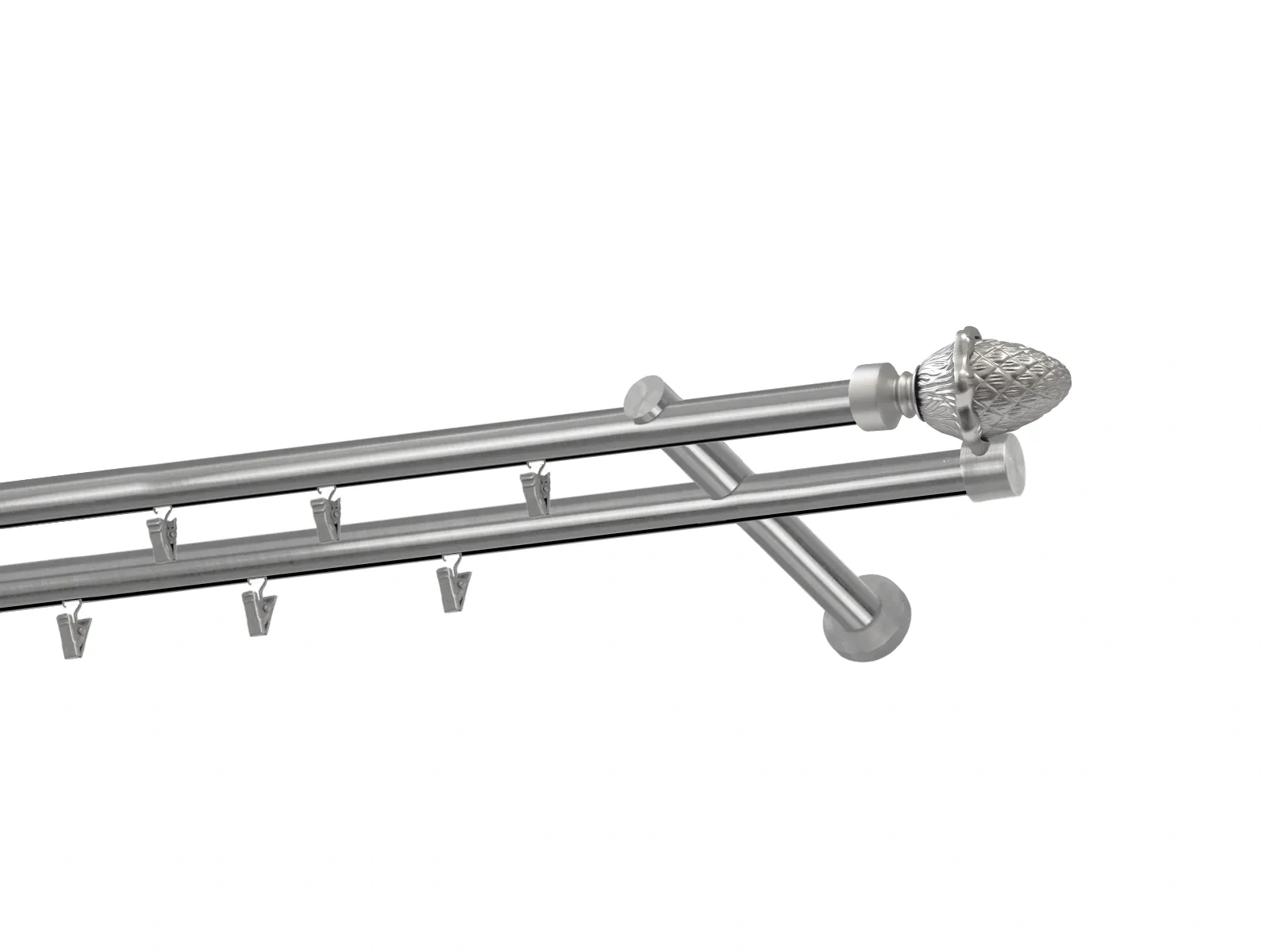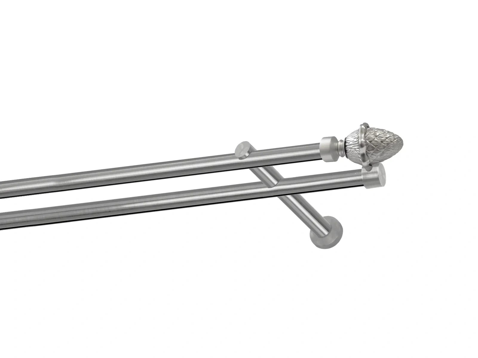 Dvojradová garniža s povrchovou úpravou - odtieň satin-nikel (matné striebro). Celokovové garniže s kvalitnou povrchovou úpravou - galvanické pokovovanie. Galvanické pokovovanie zabezpečuje vyššiu povrchovú tvrdosť, zvýšenú dolnosť voči poškriabaniu, hladký povrch. Dodávané sú v kompletoch.
