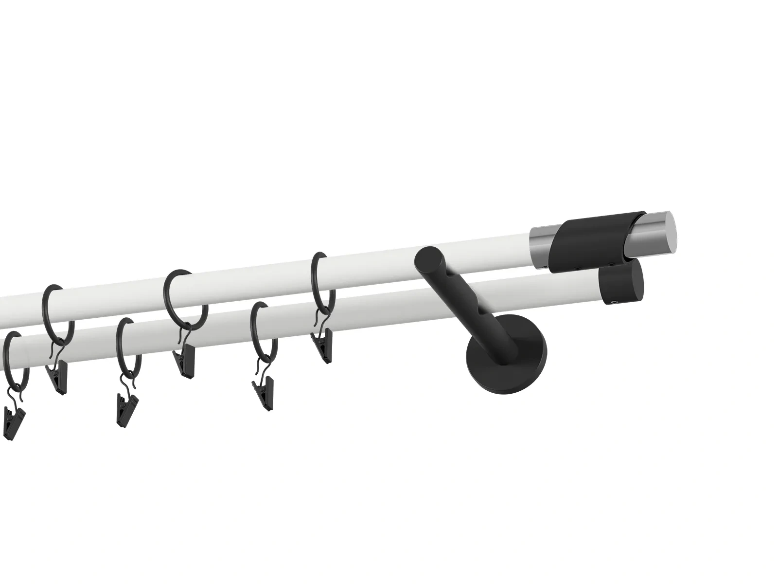 Dvojradová garniža s povrchovou úpravou - bielo čierna lakovaná. Garniže sú dodávané sú v kompletoch. Tvar koncovky a typ držiaka podľa zadaného výberu.