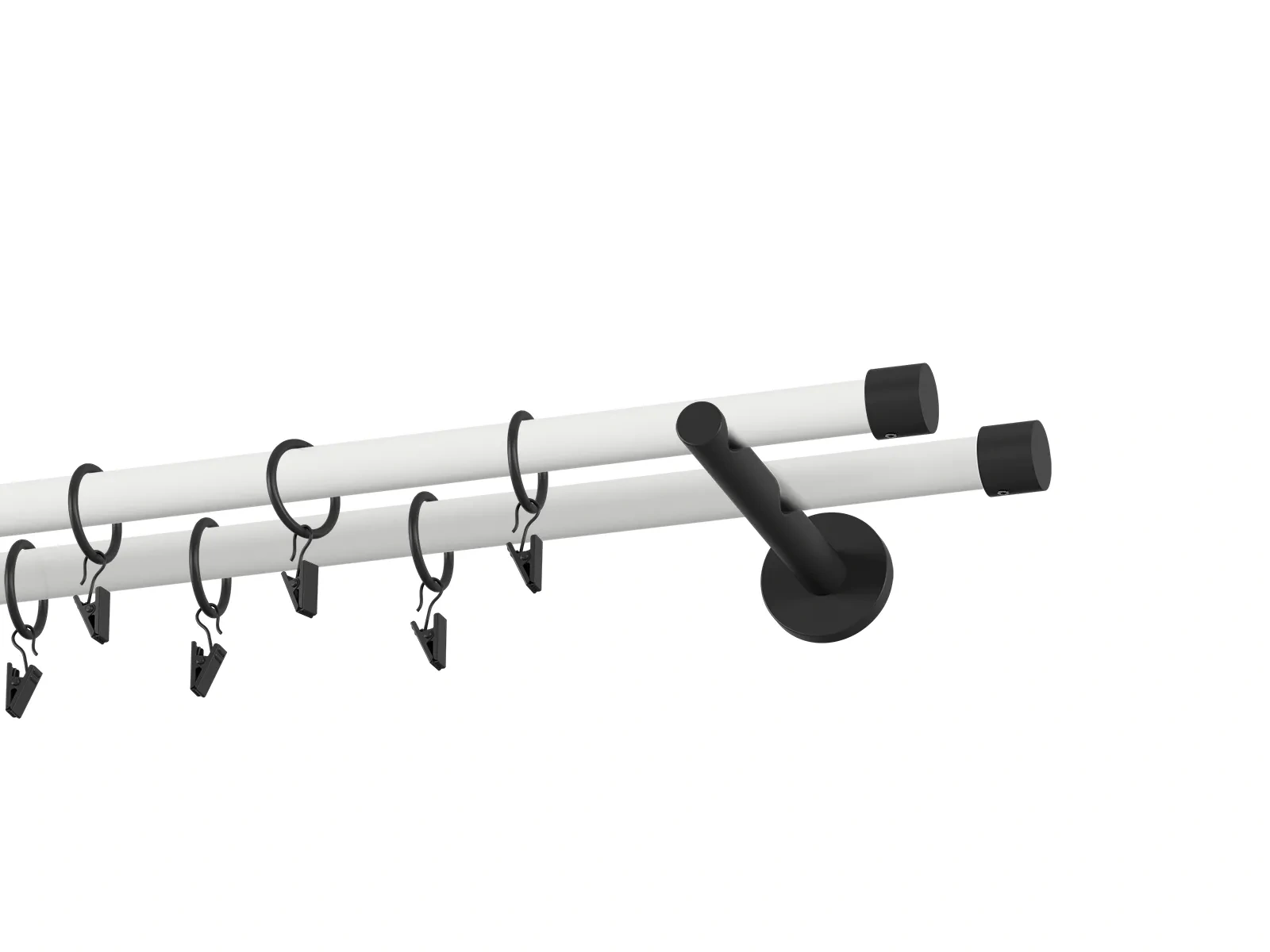 Dvojradová garniža s povrchovou úpravou - bielo čierna lakovaná. Garniže sú dodávané sú v kompletoch. Tvar koncovky a typ držiaka podľa zadaného výberu.