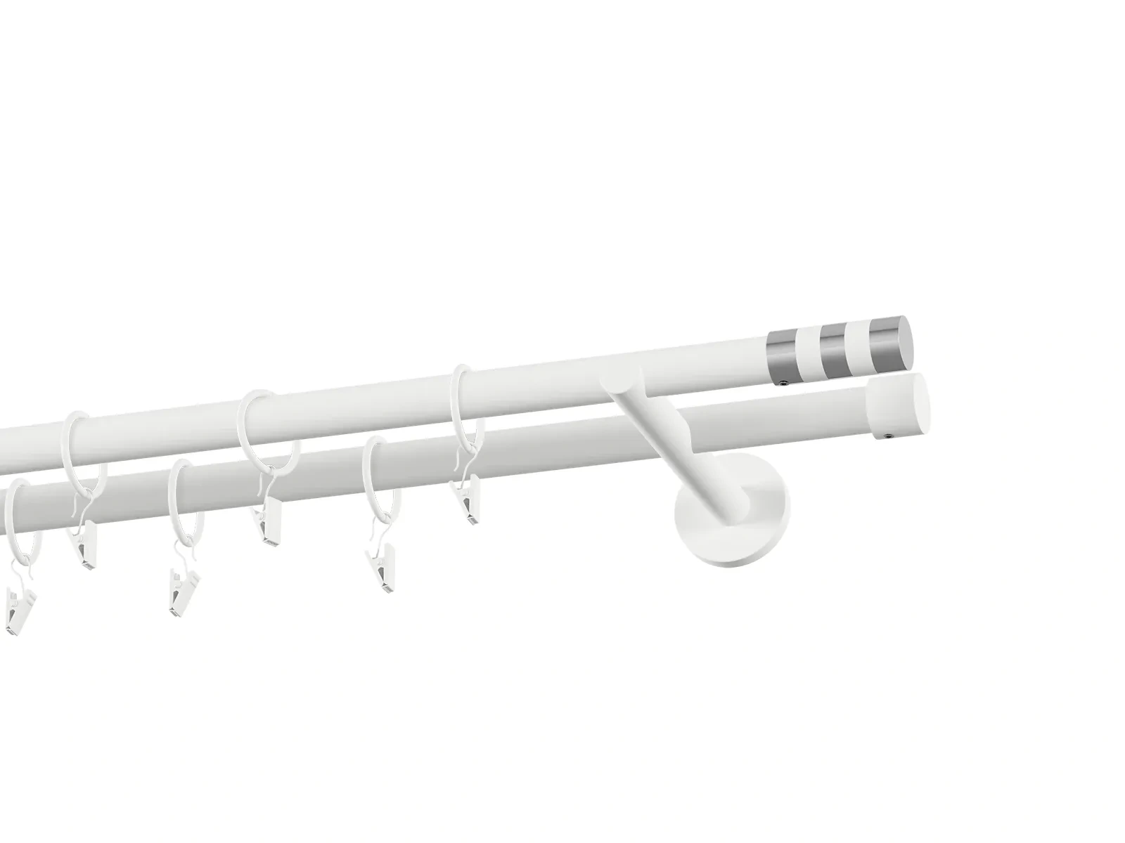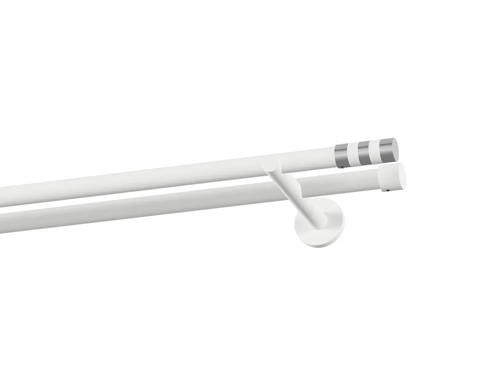 Dvojradová garniža s povrchovou úpravou - biela lakovaná. Garniže sú dodávané sú v kompletoch. Tvar koncovky a typ držiaka podľa zadaného výberu.