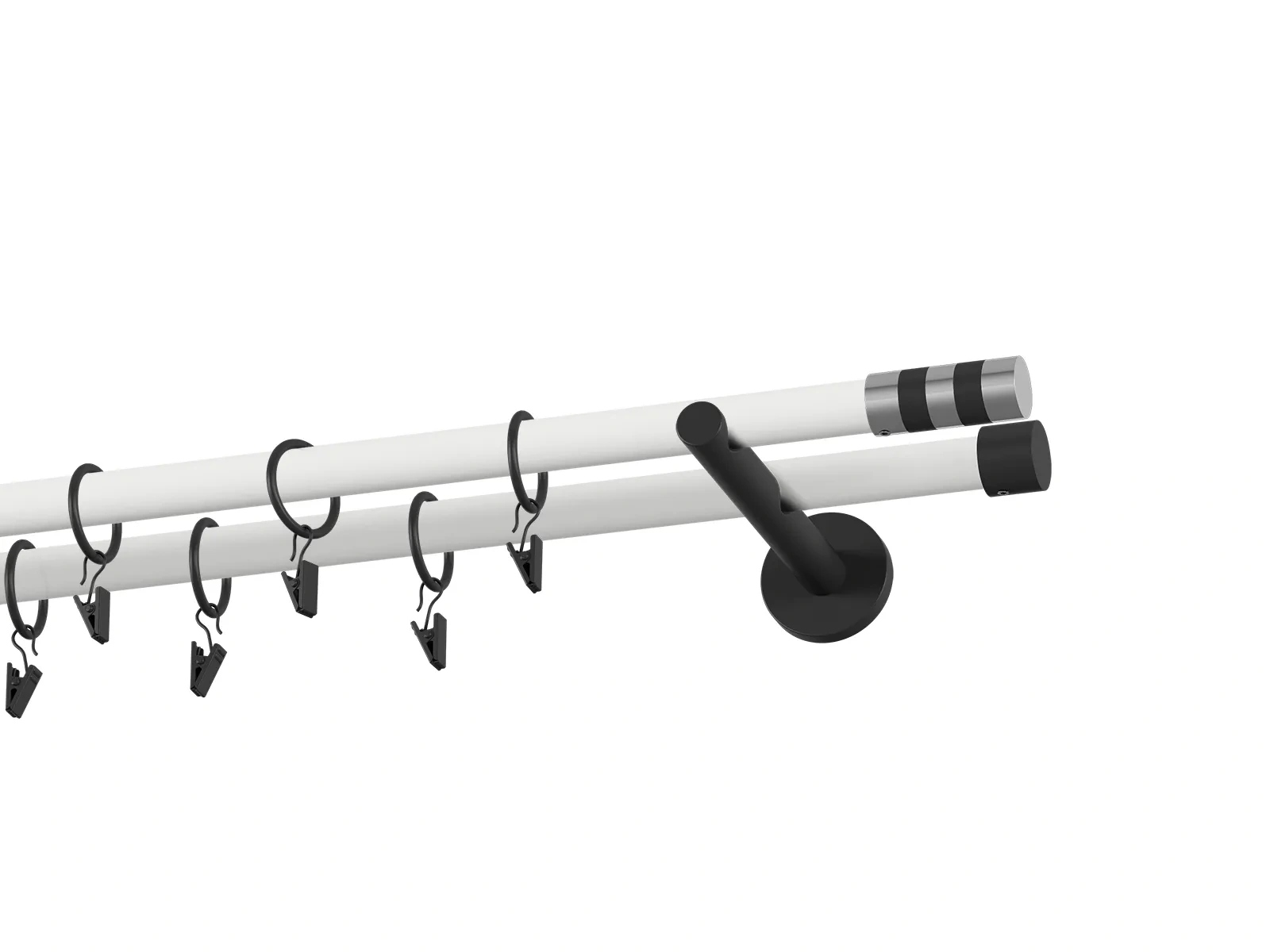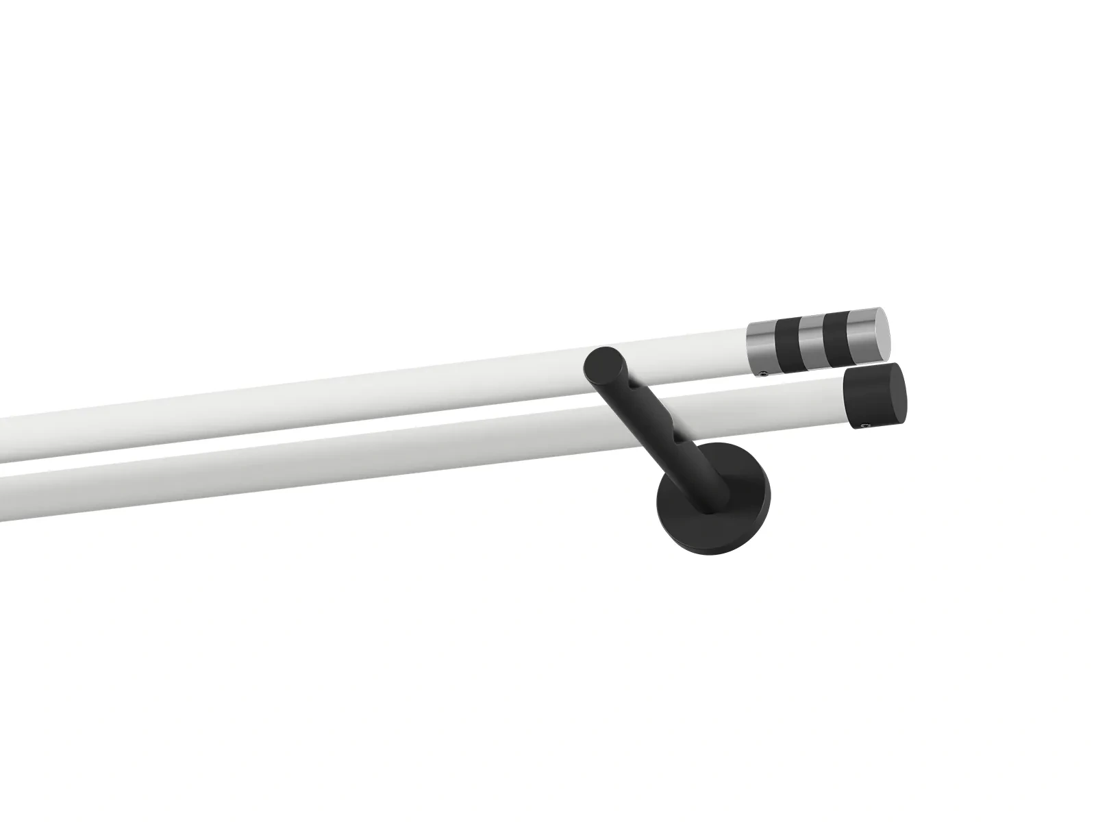 Dvojradová garniža s povrchovou úpravou - bielo čierna lakovaná. Garniže sú dodávané sú v kompletoch. Tvar koncovky a typ držiaka podľa zadaného výberu.