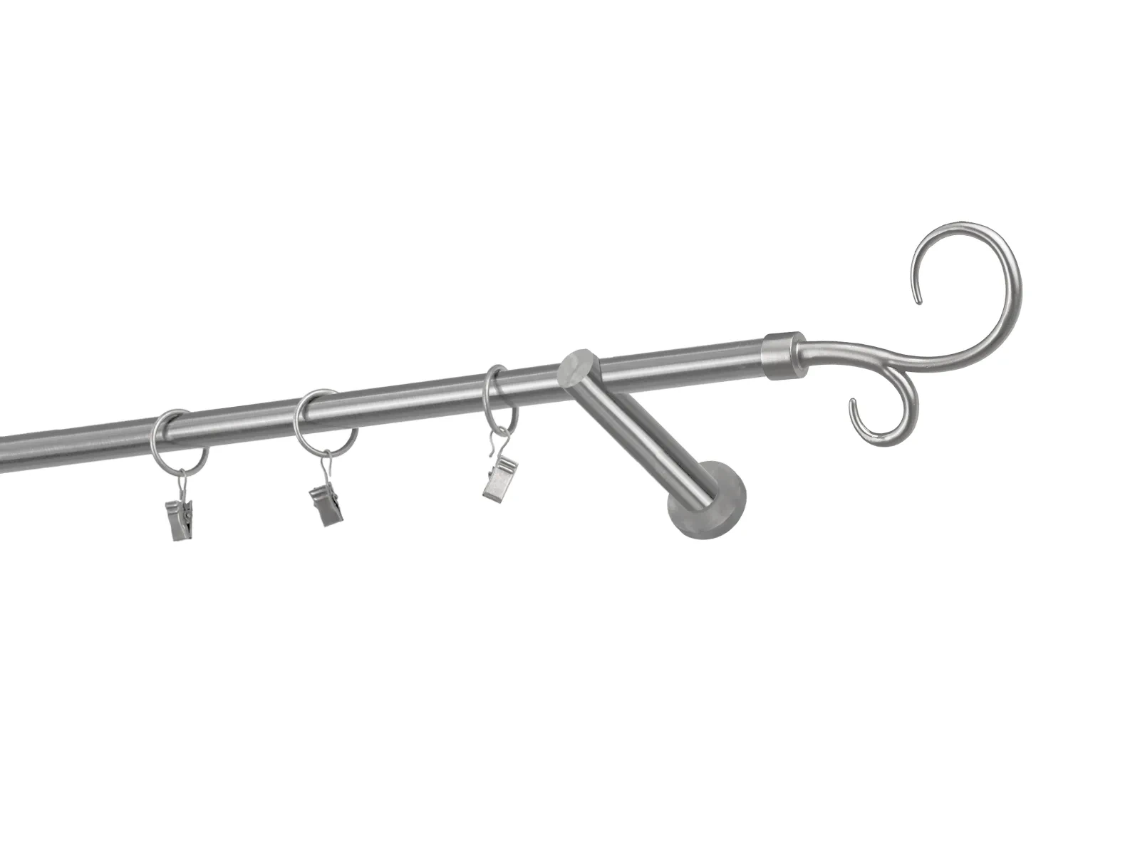 Dĺžka 1000 mm - tyč 16mm - 1000mm - 1ks, držiak - 2ks, koncovka - 2ks, krúžok so štipcom - 9ks (pri výbere parametra príslušenstvo s krúžkami so štipcom), skrutky a hmoždinky na montáž