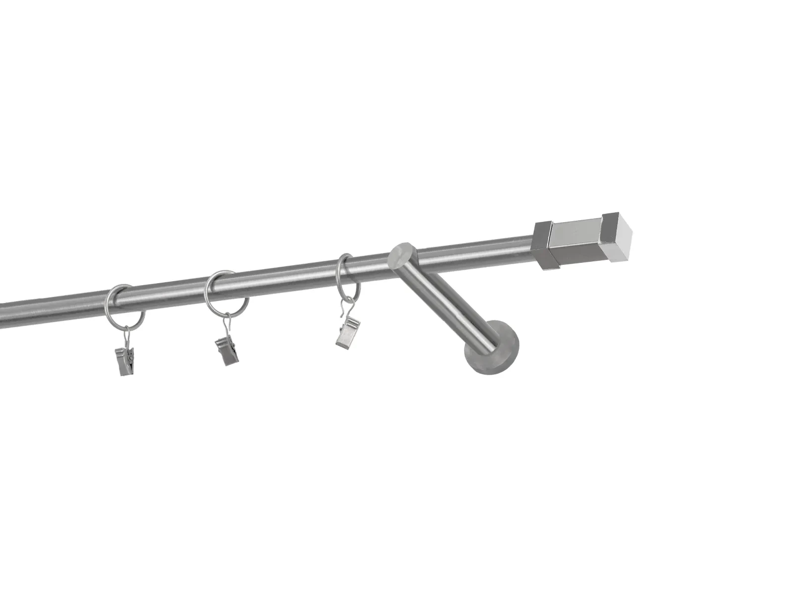 Dĺžka 1600 mm - tyč 16mm - 1600mm - 1ks, držiak - 2ks, koncovka - 2ks, krúžok so štipcom - 15ks (pri výbere parametra príslušenstvo s krúžkami so štipcom), skrutky a hmoždinky na montáž