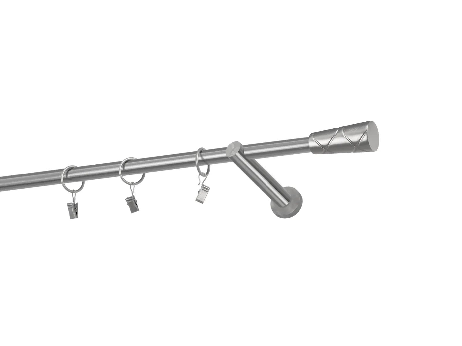Dĺžka 1600 mm - tyč 16mm - 1600mm - 1ks, držiak - 2ks, koncovka - 2ks, krúžok so štipcom - 15ks (pri výbere parametra príslušenstvo s krúžkami so štipcom), skrutky a hmoždinky na montáž