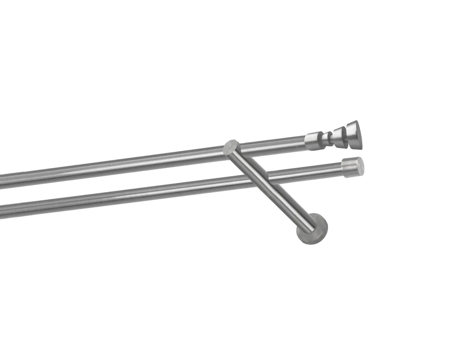 Dvojradová garniža s povrchovou úpravou - odtieň satin-nikel (matné striebro). Celokovové garniže s kvalitnou povrchovou úpravou - galvanické pokovovanie. Galvanické pokovovanie zabezpečuje vyššiu povrchovú tvrdosť, zvýšenú dolnosť voči poškriabaniu, hladký povrch. Dodávané sú v kompletoch.