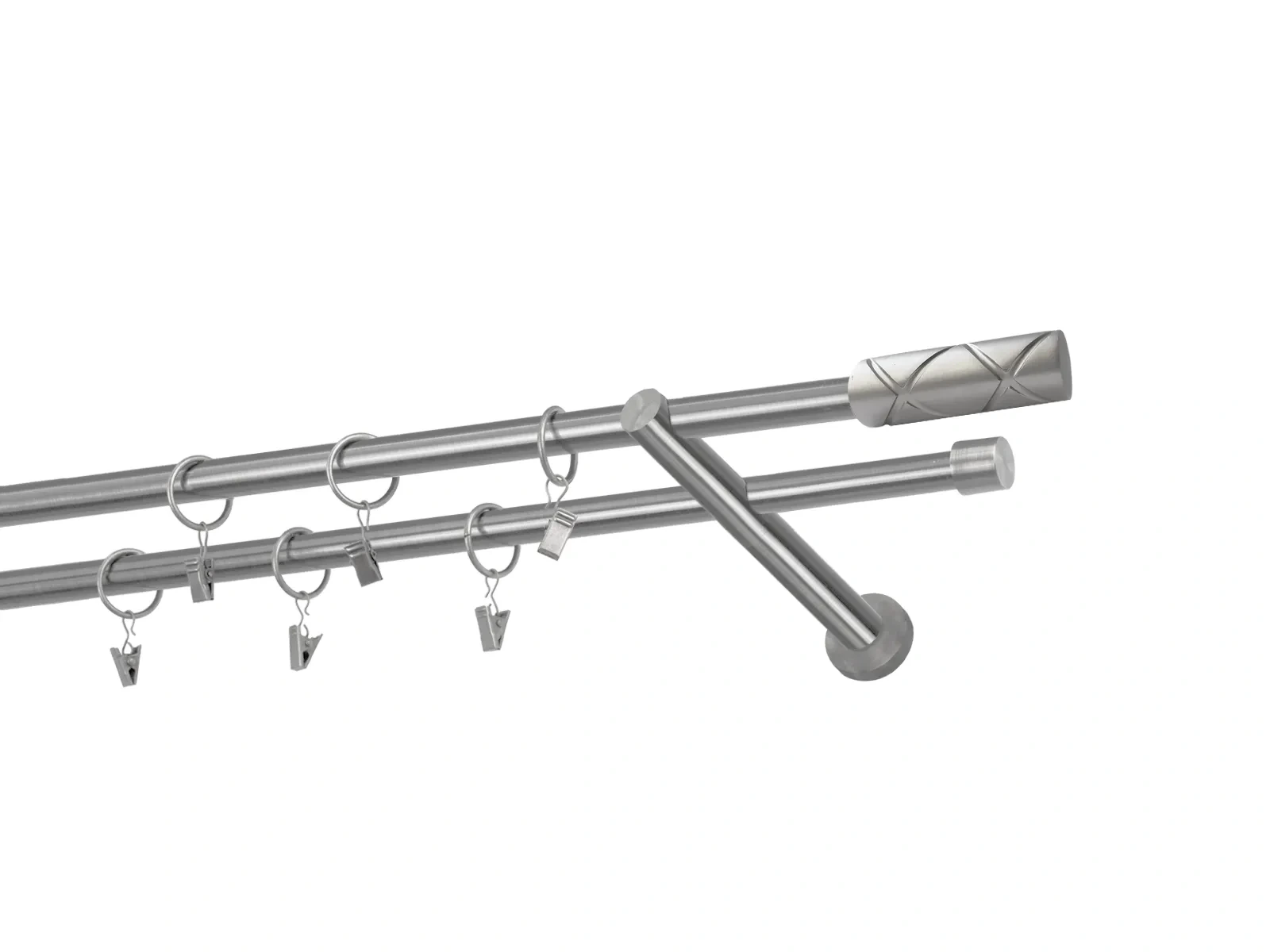 Dvojradová garniža s povrchovou úpravou - odtieň satin-nikel (matné striebro). Celokovové garniže s kvalitnou povrchovou úpravou - galvanické pokovovanie. Galvanické pokovovanie zabezpečuje vyššiu povrchovú tvrdosť, zvýšenú dolnosť voči poškriabaniu, hladký povrch. Dodávané sú v kompletoch.