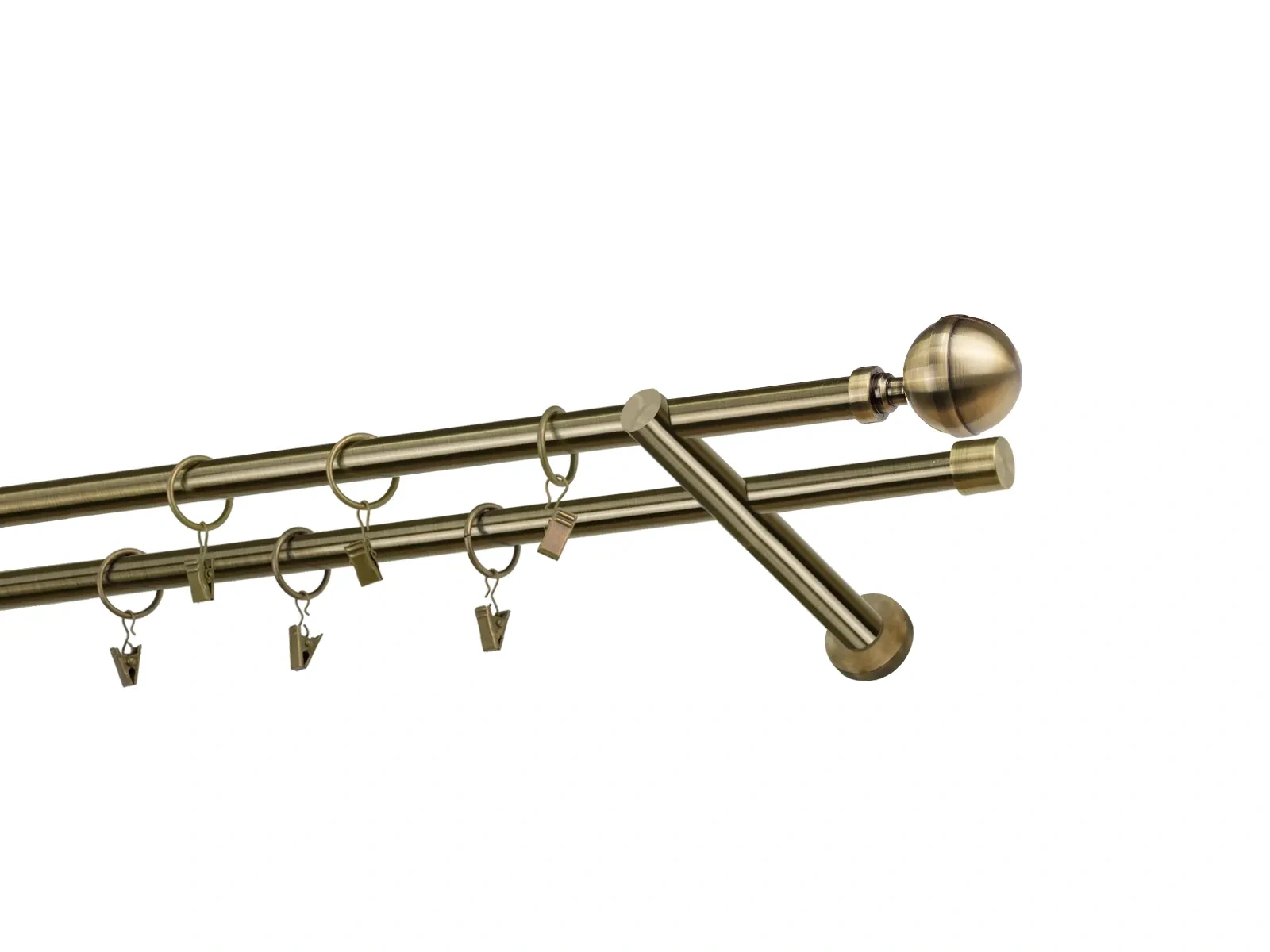 Dĺžka 1600 mm - tyč 16mm - 1600mm - 2ks, držiak dvojitý - 2ks, koncovka - 2ks, koncovka zadná(PULLO) - 2ks, krúžok so štipcom - 30ks (pri výbere parametra príslušenstvo s krúžkami so štipcom), skrutky a hmoždinky na montáž