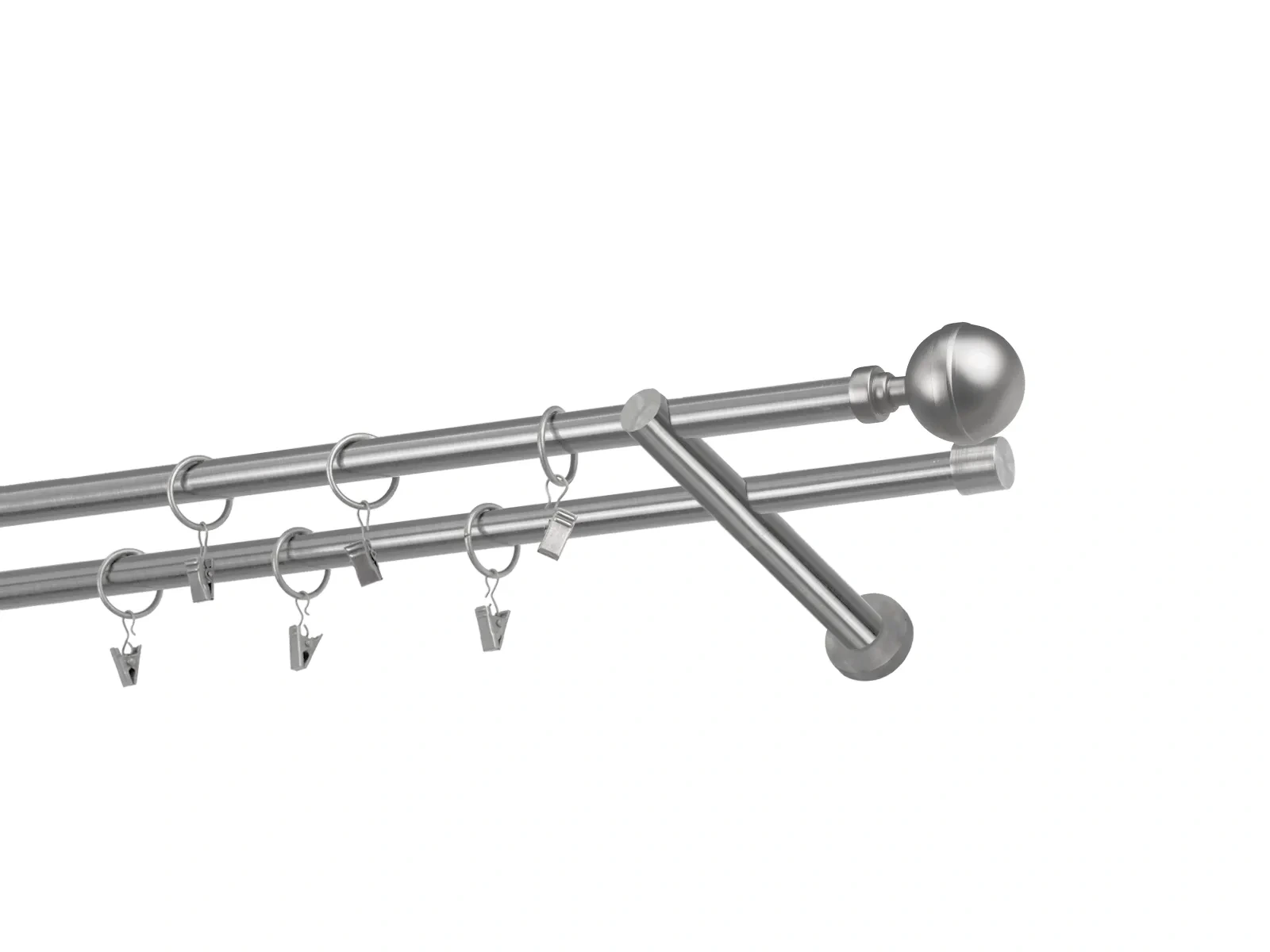 Dĺžka 1600 mm - tyč 16mm - 1600mm - 2ks, držiak dvojitý - 2ks, koncovka - 2ks, koncovka zadná(PULLO) - 2ks, krúžok so štipcom - 30ks (pri výbere parametra príslušenstvo s krúžkami so štipcom), skrutky a hmoždinky na montáž