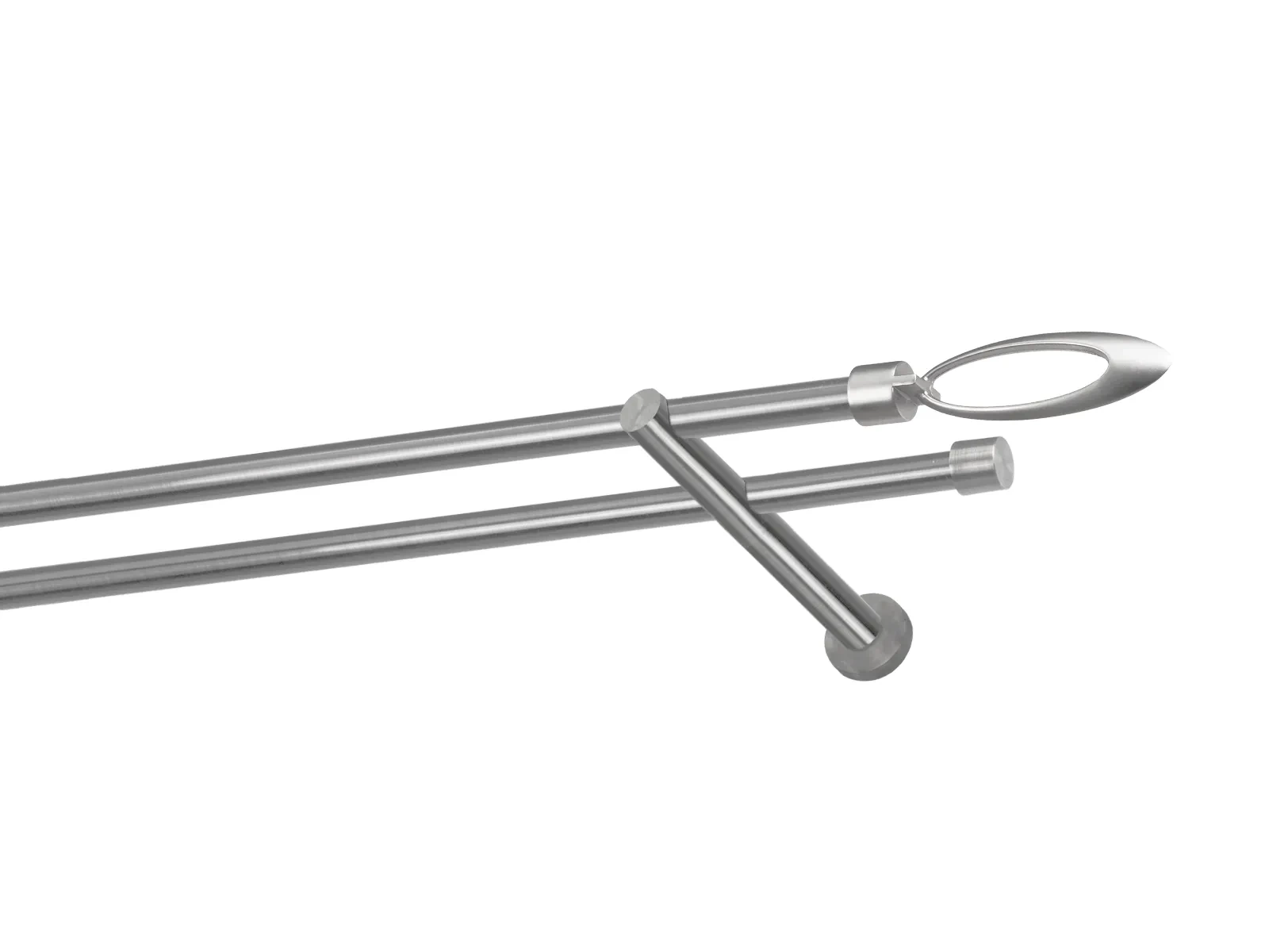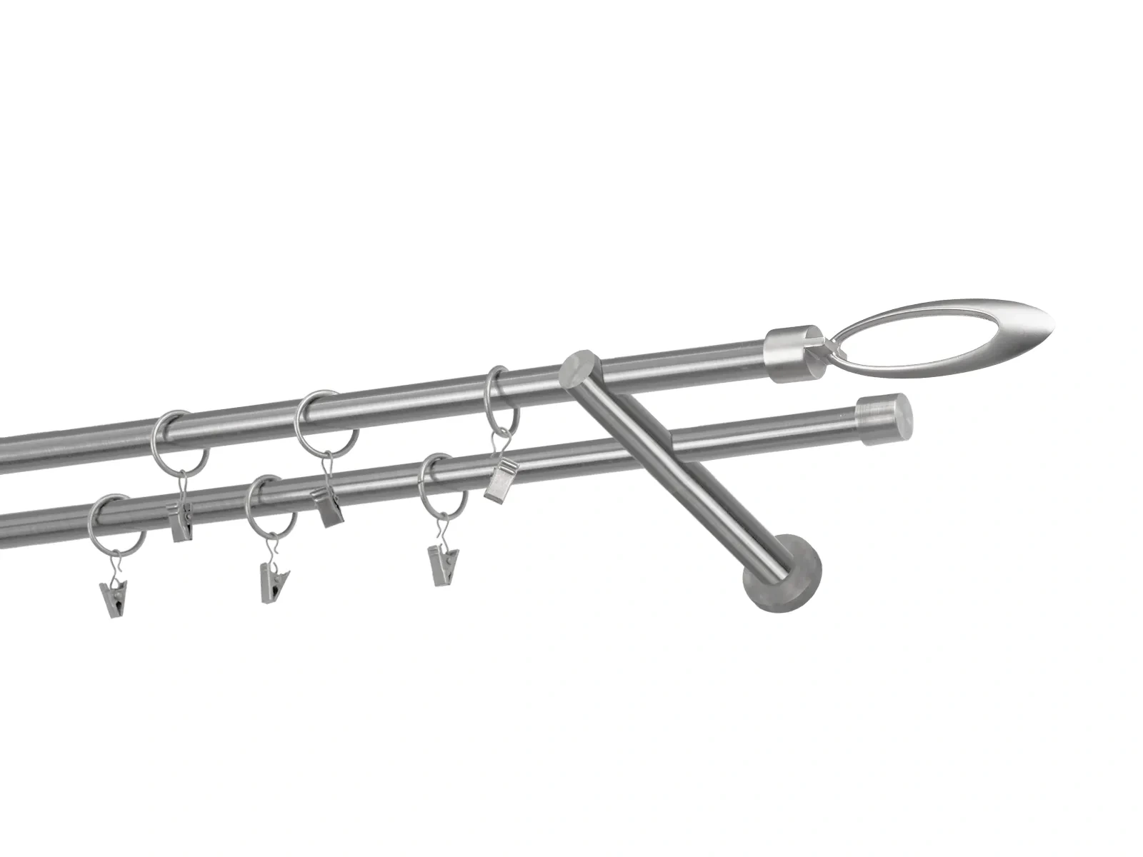 Dvojradová garniža s povrchovou úpravou - odtieň satin-nikel (matné striebro). Celokovové garniže s kvalitnou povrchovou úpravou - galvanické pokovovanie. Galvanické pokovovanie zabezpečuje vyššiu povrchovú tvrdosť, zvýšenú dolnosť voči poškriabaniu, hladký povrch. Dodávané sú v kompletoch.