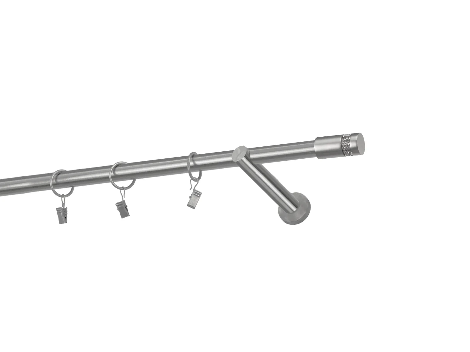 Dĺžka 1200 mm - tyč 19mm - 1200mm - 1ks, držiak - 2ks, koncovka - 2ks, krúžok so štipcom - 11ks (pri výbere parametra príslušenstvo s krúžkami so štipcom), skrutky a hmoždinky na montáž