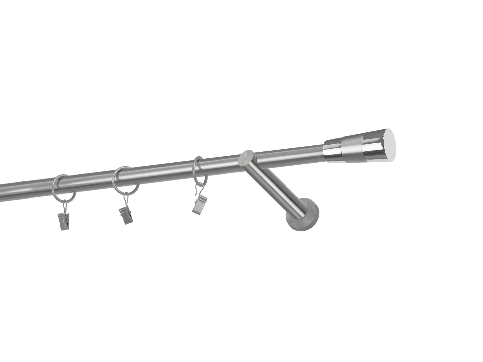 Dĺžka 1600 mm - tyč 19mm - 1600mm - 1ks, držiak - 2ks, koncovka - 2ks, krúžok so štipcom - 15ks (pri výbere parametra príslušenstvo s krúžkami so štipcom), skrutky a hmoždinky na montáž