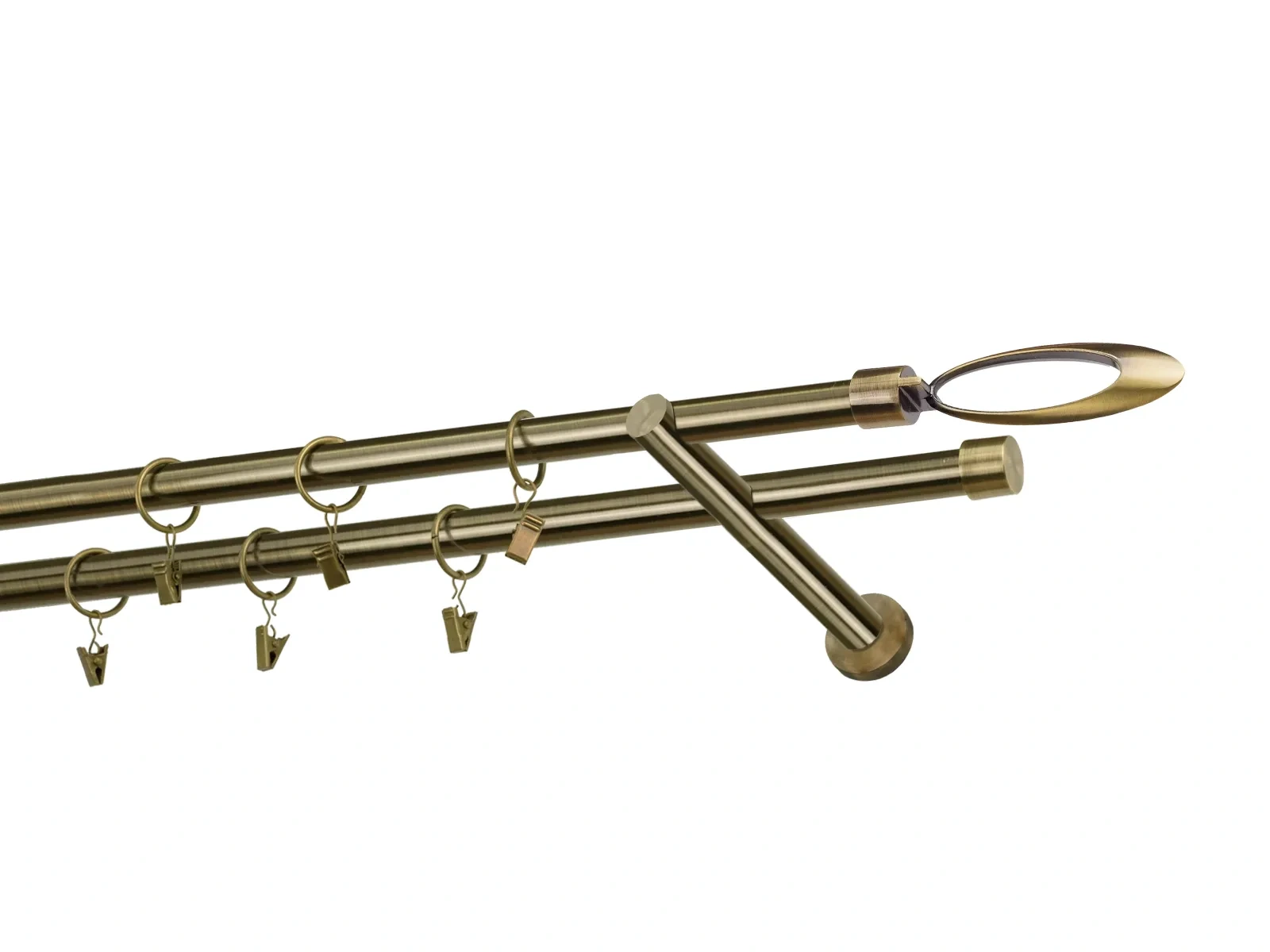 Dĺžka 1200 mm - tyč 19mm - 1200mm - 2ks, držiak dvojitý - 2ks, koncovka - 2ks, koncovka zadná(PULLO) - 2ks, krúžok so štipcom - 22ks (pri výbere parametra príslušenstvo s krúžkami so štipcom), skrutky a hmoždinky na montáž
