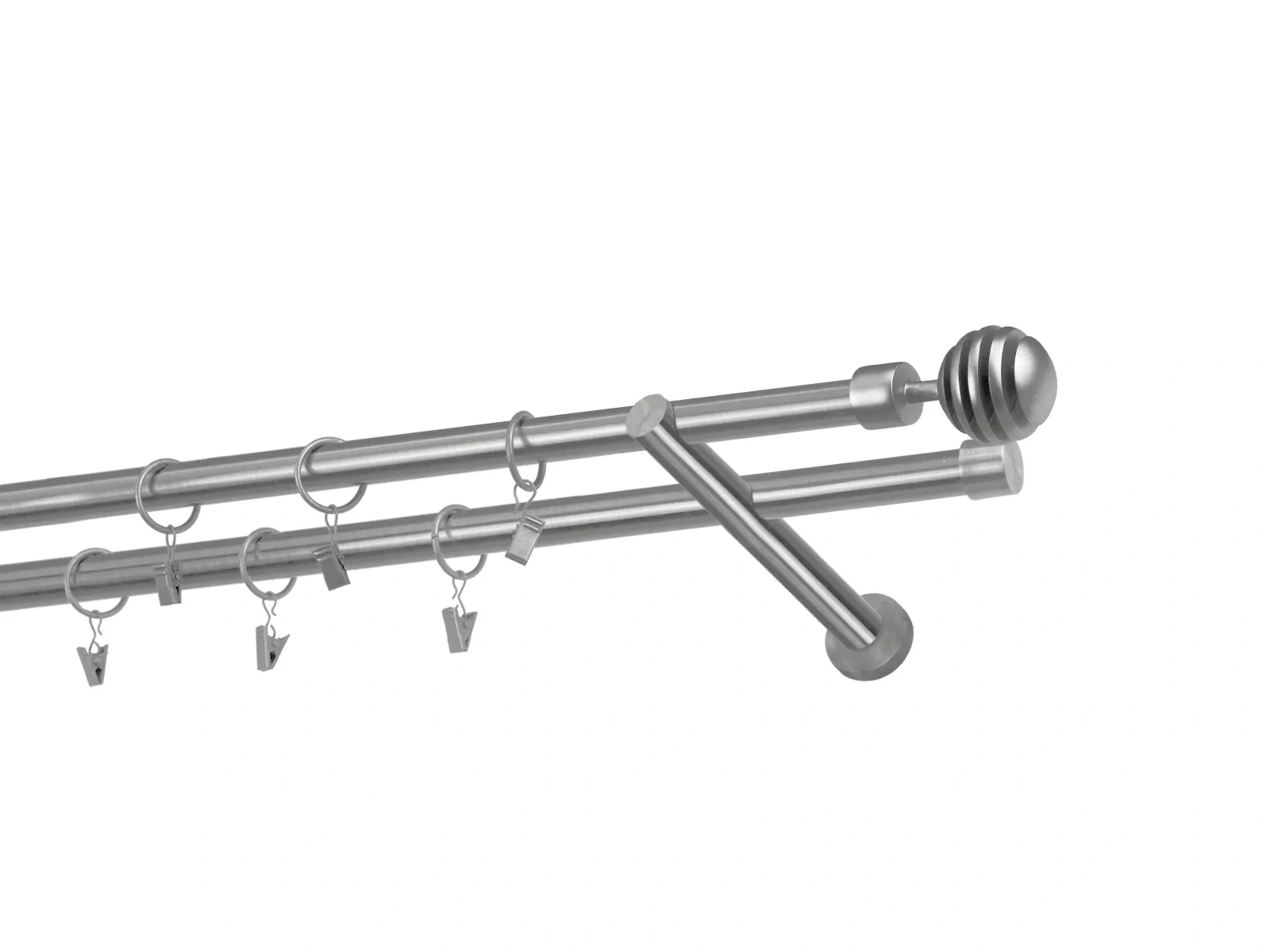 Dvojradová garniža s povrchovou úpravou - odtieň satin-nikel (matné striebro). Celokovové garniže s kvalitnou povrchovou úpravou - galvanické pokovovanie. Galvanické pokovovanie zabezpečuje vyššiu povrchovú tvrdosť, zvýšenú dolnosť voči poškriabaniu, hladký povrch. Dodávané sú v kompletoch.