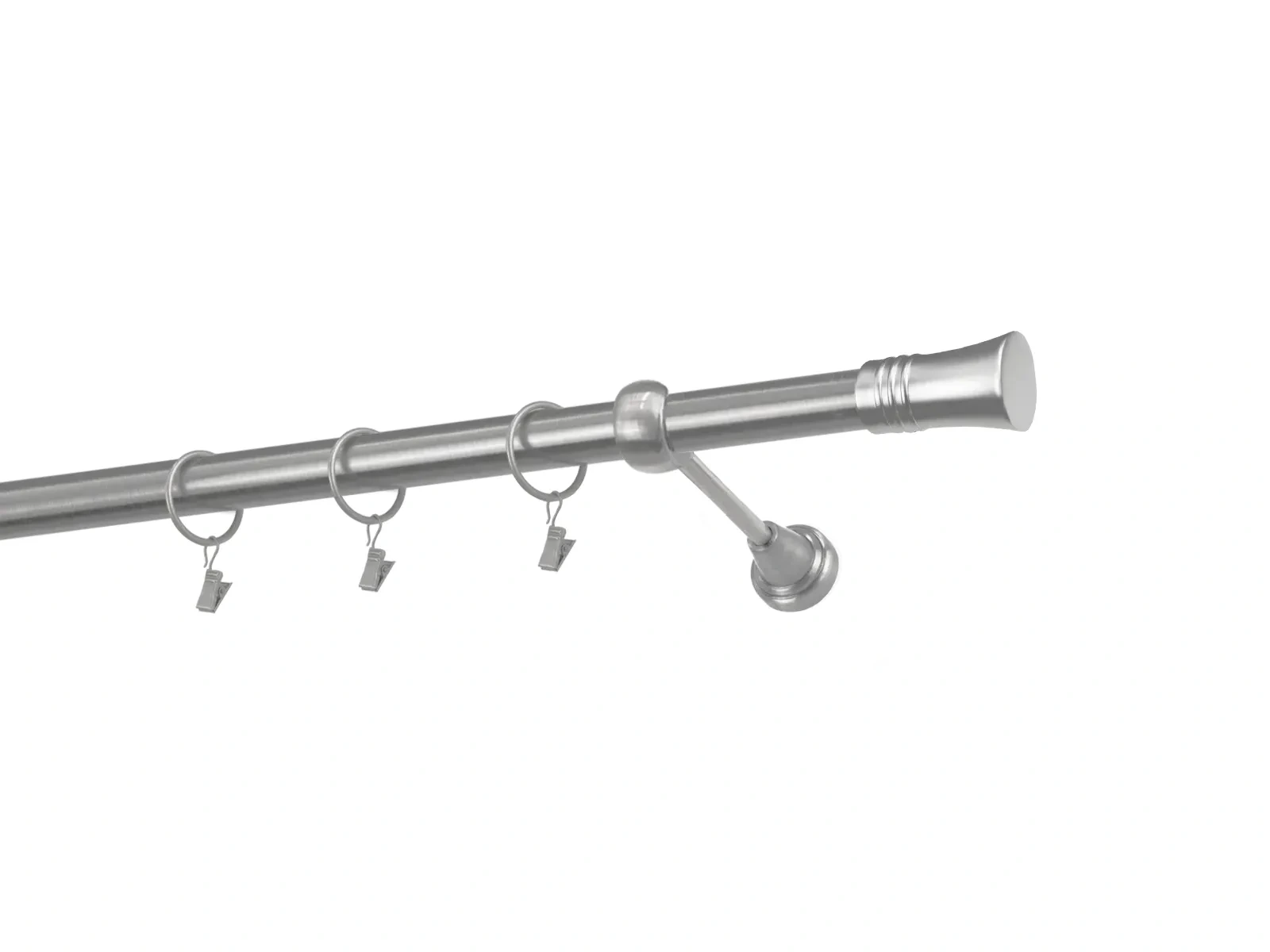 Dĺžka 1200 mm - tyč 25mm - 1200mm - 1ks, držiak - 2ks, koncovka - 2ks, krúžok so štipcom - 11ks (pri výbere parametra príslušenstvo s krúžkami so štipcom), skrutky a hmoždinky na montáž