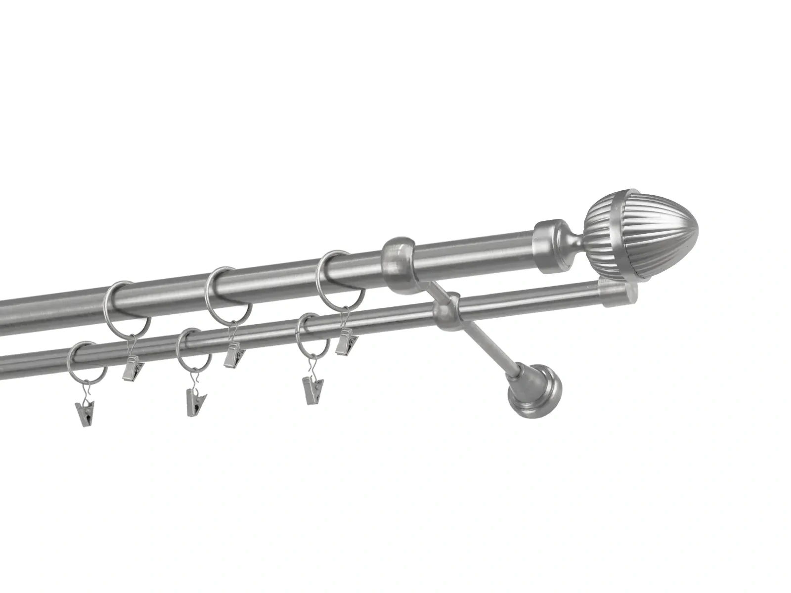 Dvojradová garniža s povrchovou úpravou - odtieň satin-nikel (matné striebro). Celokovové garniže s kvalitnou povrchovou úpravou - galvanické pokovovanie. Galvanické pokovovanie zabezpečuje vyššiu povrchovú tvrdosť, zvýšenú dolnosť voči poškriabaniu, hladký povrch. Dodávané sú v kompletoch.