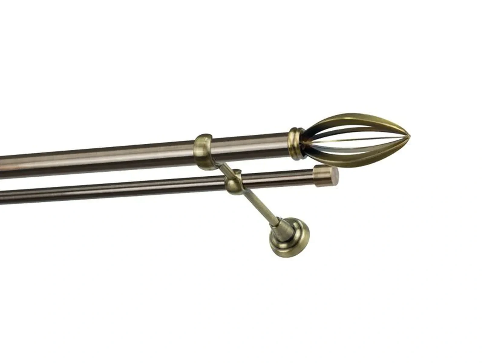 Dvojradová garniža s povrchovou úpravou - odtieň antik (matné zlato). Celokovové garniže s kvalitnou povrchovou úpravou - galvanické pokovovanie. Galvanické pokovovanie zabezpečuje vyššiu povrchovú tvrdosť, zvýšenú dolnosť voči poškriabaniu, hladký povrch. Dodávané sú v kompletoch.