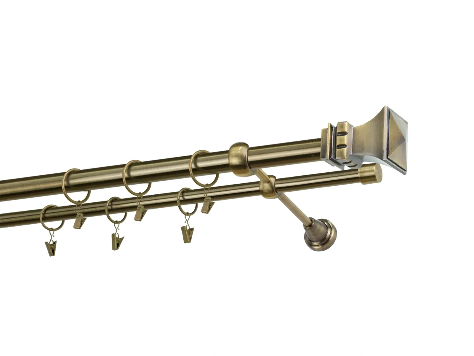 Dvojradová garniža s povrchovou úpravou - odtieň antik (matné zlato). Celokovové garniže s kvalitnou povrchovou úpravou - galvanické pokovovanie. Galvanické pokovovanie zabezpečuje vyššiu povrchovú tvrdosť, zvýšenú dolnosť voči poškriabaniu, hladký povrch. Dodávané sú v kompletoch.