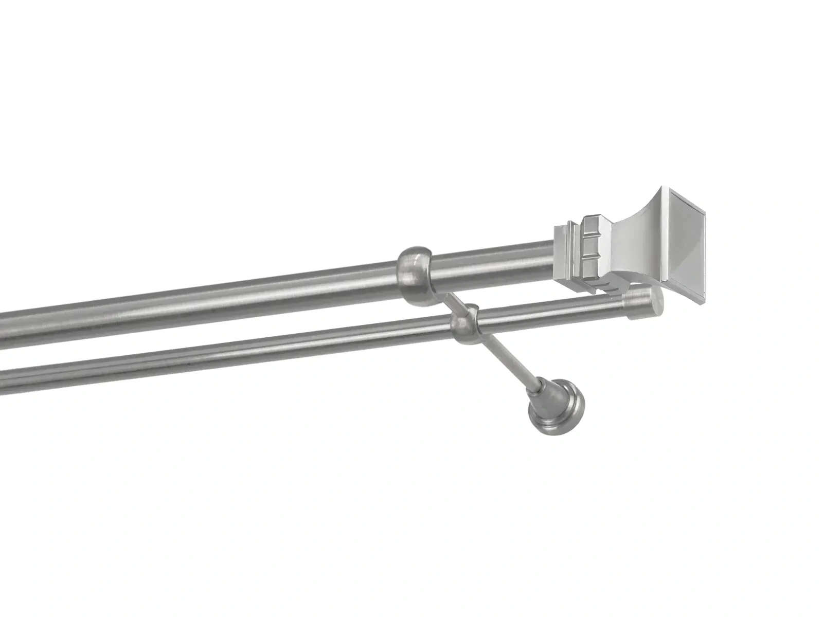 Dvojradová garniža s povrchovou úpravou - odtieň satin-nikel (matné striebro). Celokovové garniže s kvalitnou povrchovou úpravou - galvanické pokovovanie. Galvanické pokovovanie zabezpečuje vyššiu povrchovú tvrdosť, zvýšenú dolnosť voči poškriabaniu, hladký povrch. Dodávané sú v kompletoch.