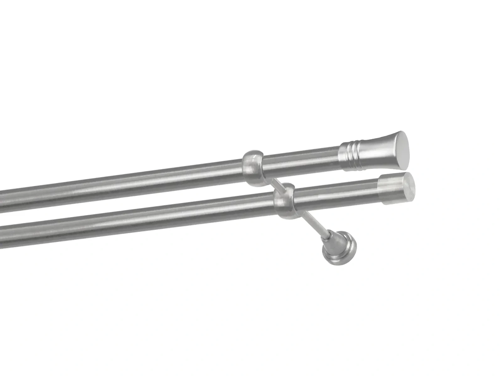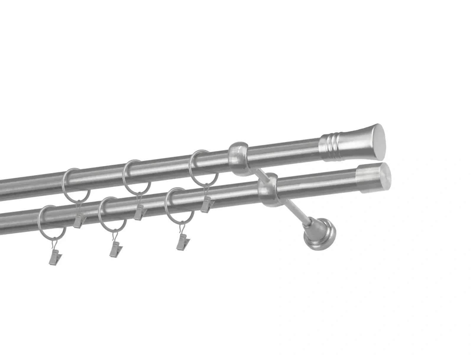 Dvojradová garniža s povrchovou úpravou - odtieň satin-nikel (matné striebro). Celokovové garniže s kvalitnou povrchovou úpravou - galvanické pokovovanie. Galvanické pokovovanie zabezpečuje vyššiu povrchovú tvrdosť, zvýšenú dolnosť voči poškriabaniu, hladký povrch. Dodávané sú v kompletoch.