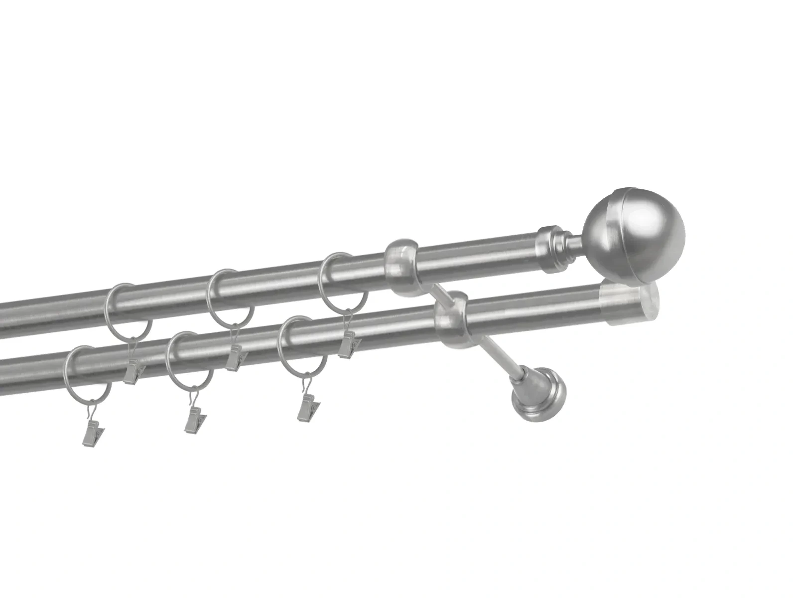 Dĺžka 1600 mm - tyč 25mm - 1600mm - 2ks, držiak dvojitý - 2ks, koncovka - 2ks, koncovka zadná(PULLO) - 2ks, krúžok so štipcom - 30ks (pri výbere parametra príslušenstvo s krúžkami so štipcom), skrutky a hmoždinky na montáž