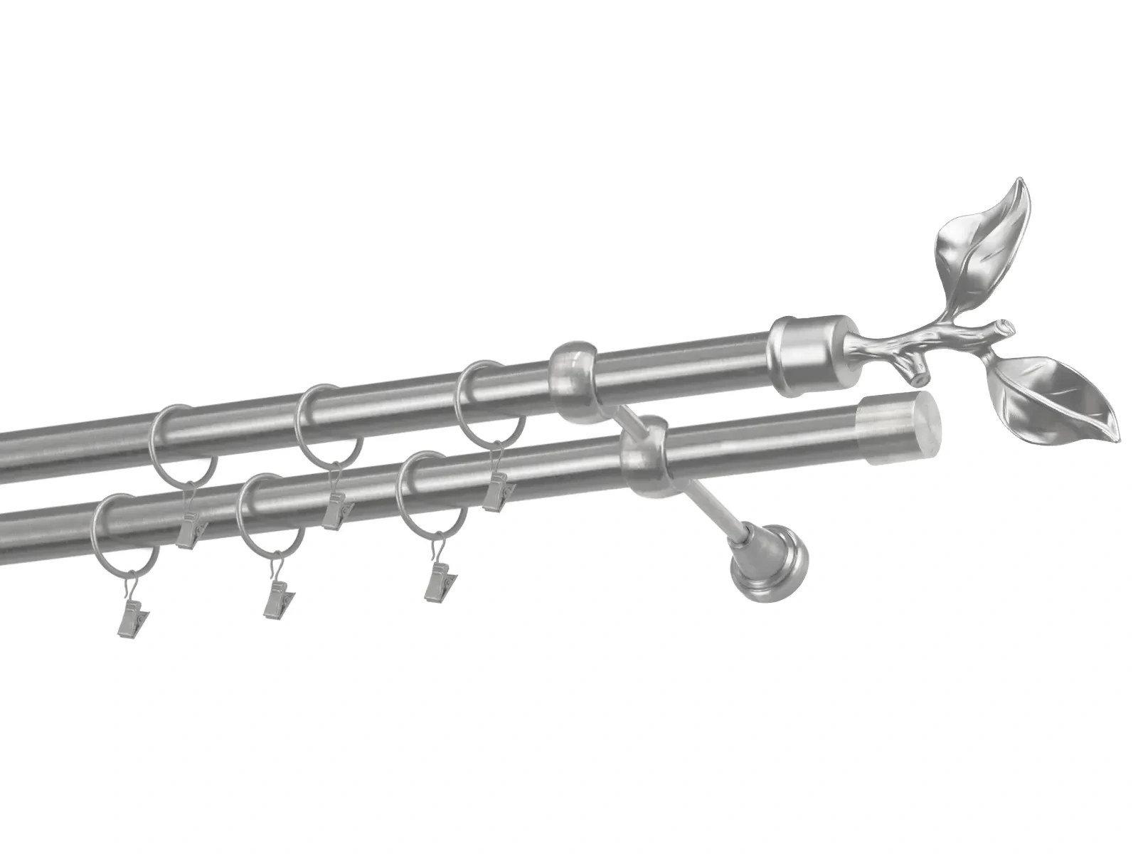 Dvojradová garniža s povrchovou úpravou - odtieň satin-nikel (matné striebro). Celokovové garniže s kvalitnou povrchovou úpravou - galvanické pokovovanie. Galvanické pokovovanie zabezpečuje vyššiu povrchovú tvrdosť, zvýšenú dolnosť voči poškriabaniu, hladký povrch. Dodávané sú v kompletoch.