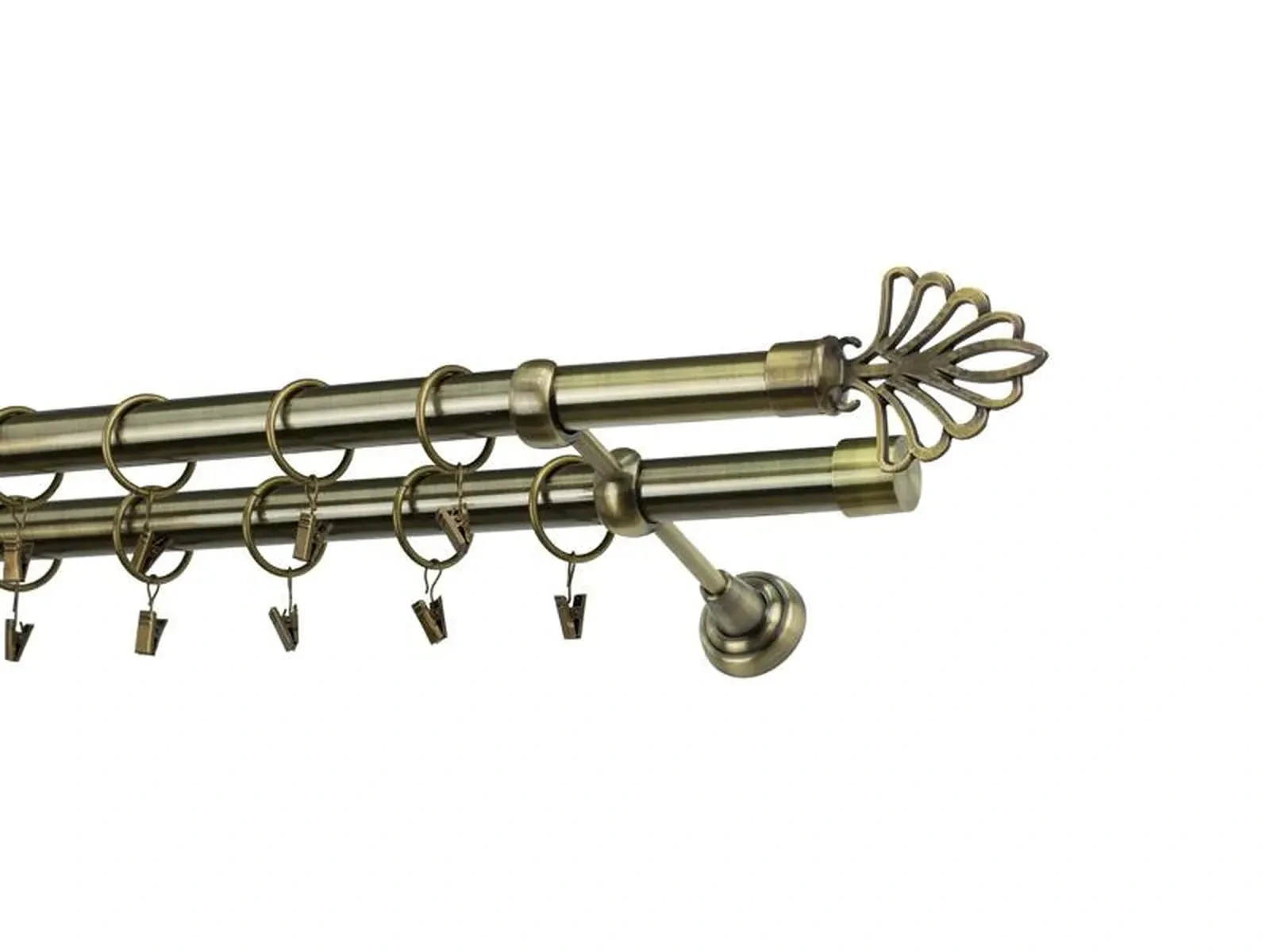 Dvojradová garniža s povrchovou úpravou - odtieň antik (matné zlato). Celokovové garniže s kvalitnou povrchovou úpravou - galvanické pokovovanie. Galvanické pokovovanie zabezpečuje vyššiu povrchovú tvrdosť, zvýšenú dolnosť voči poškriabaniu, hladký povrch. Dodávané sú v kompletoch.