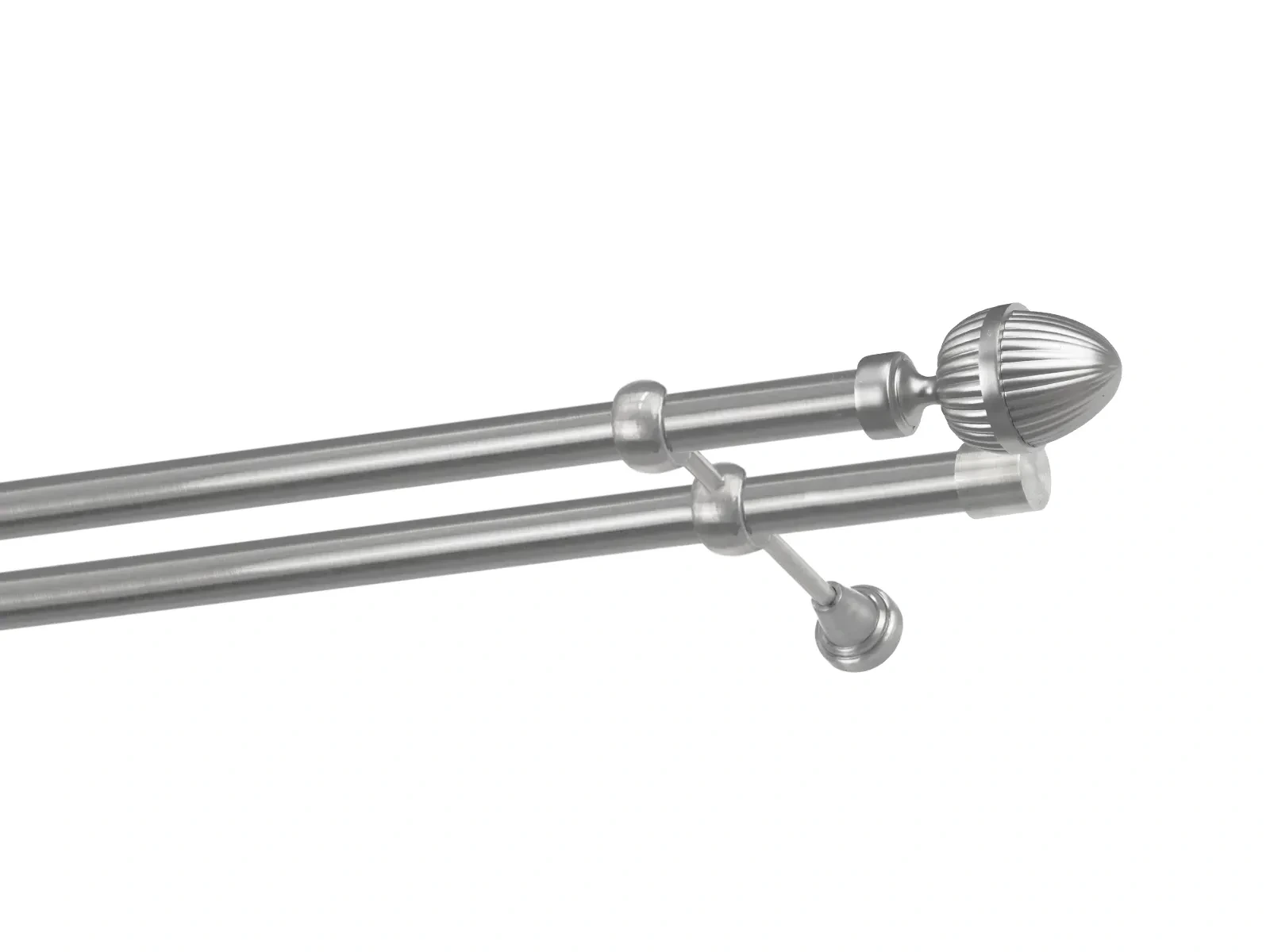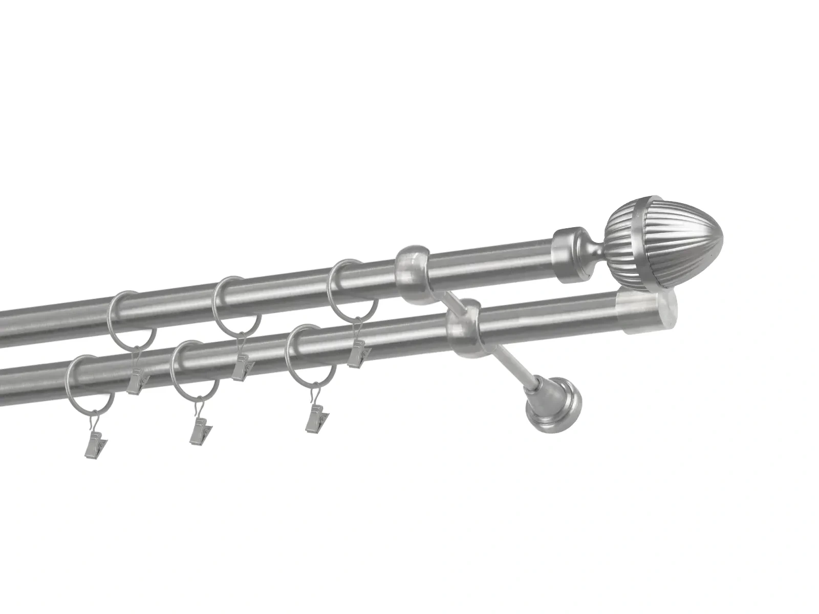 Dvojradová garniža s povrchovou úpravou - odtieň satin-nikel (matné striebro). Celokovové garniže s kvalitnou povrchovou úpravou - galvanické pokovovanie. Galvanické pokovovanie zabezpečuje vyššiu povrchovú tvrdosť, zvýšenú dolnosť voči poškriabaniu, hladký povrch. Dodávané sú v kompletoch.