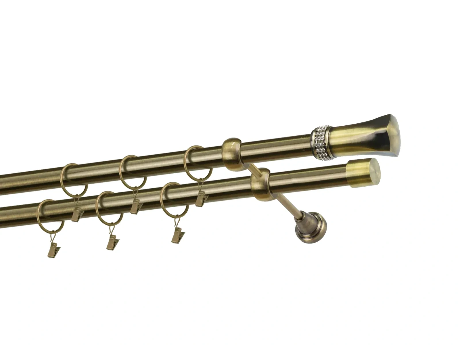 Dvojradová garniža s povrchovou úpravou - odtieň antik (matné zlato). Celokovové garniže s kvalitnou povrchovou úpravou - galvanické pokovovanie. Galvanické pokovovanie zabezpečuje vyššiu povrchovú tvrdosť, zvýšenú dolnosť voči poškriabaniu, hladký povrch. Dodávané sú v kompletoch.