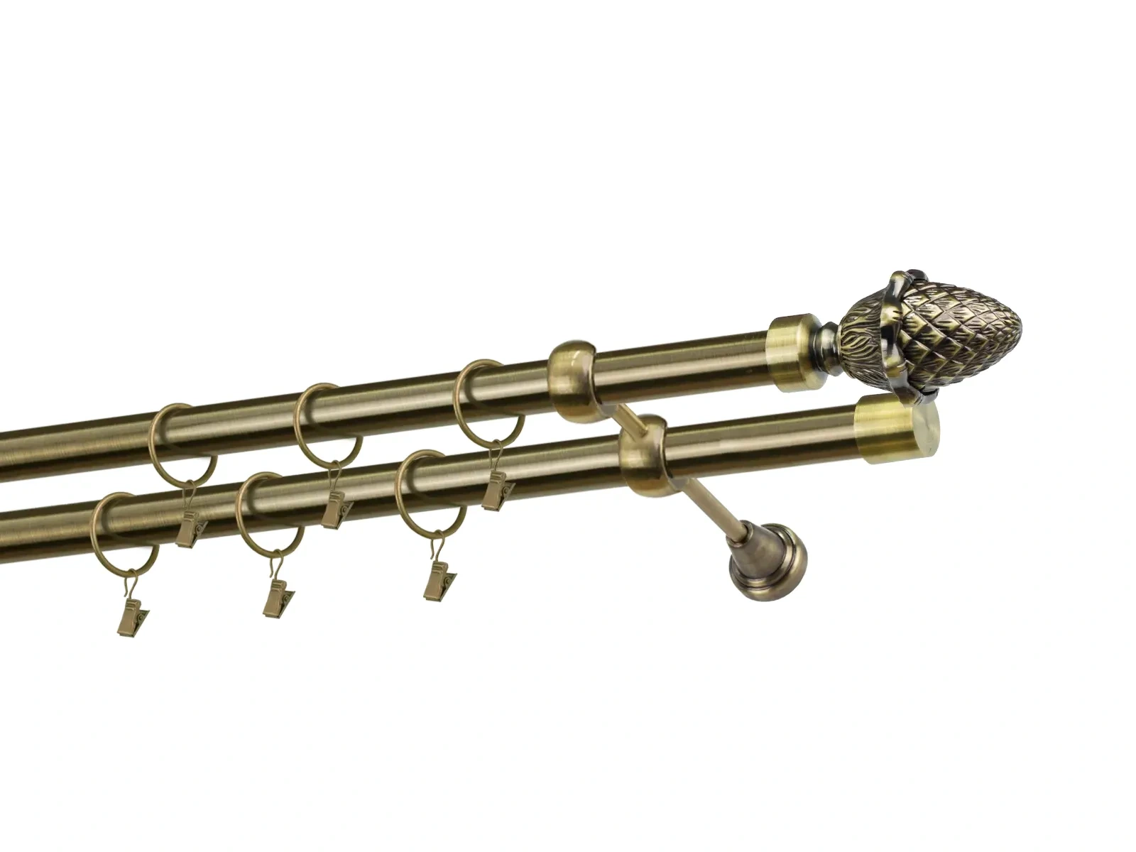 Dvojradová garniža s povrchovou úpravou - odtieň antik (matné zlato). Celokovové garniže s kvalitnou povrchovou úpravou - galvanické pokovovanie. Galvanické pokovovanie zabezpečuje vyššiu povrchovú tvrdosť, zvýšenú dolnosť voči poškriabaniu, hladký povrch. Dodávané sú v kompletoch.