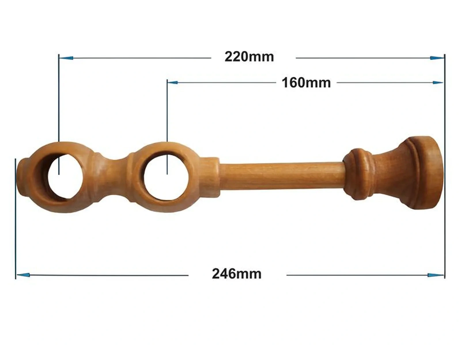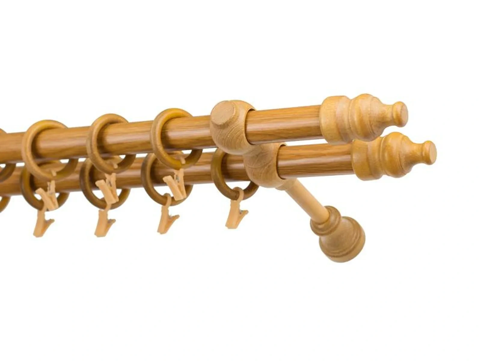 Koncovky a držiaky a krúžky sú drevené. Tyč je drevená (vyrábaná technológiou ako europrofily pre okna - čo eliminuje ohýbanie vplyvom tepla) a je potiahnutá odolnou drevoimitačnou fóliou. Dodávané sú v kompletoch.