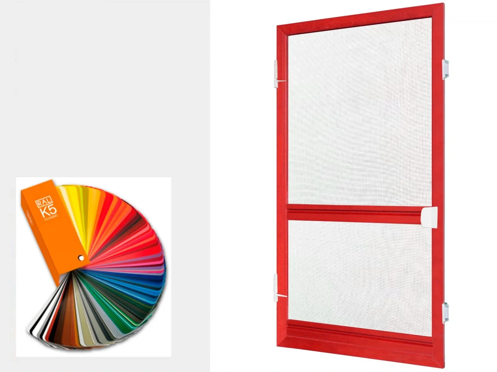 Sieťky proti hmyzu - rámobé na DVERE - vo farbe RAL sú dodatočne povrchovo upravované práškovým lakovaním podľa medzinárodného vzorkovníka farieb RAL. Vo zvolenej farbe sú dodávané hliníkové profily. Bližšie o farbách RAL najdete tu.