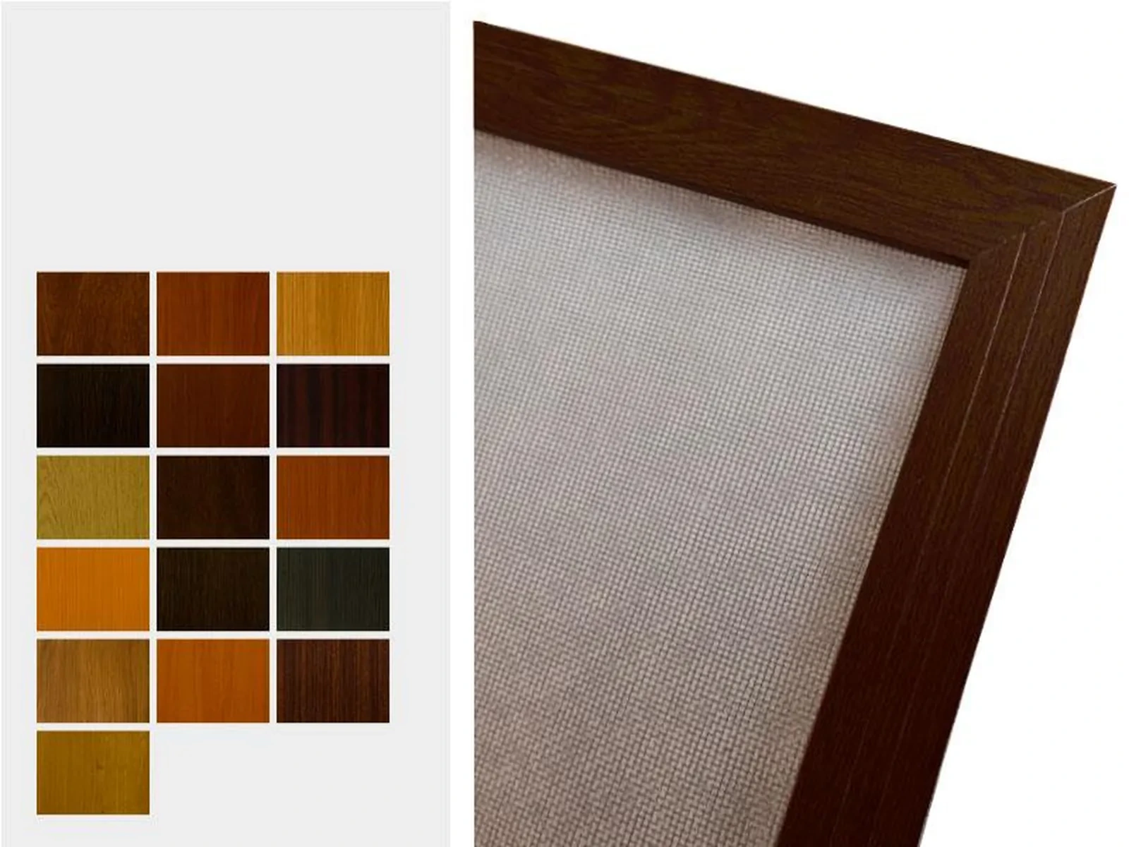 Sieťky proti hmyzu v úprave s renolitovou fóliou sú vyrábané z hliníkového profilu, ktoré sú potiahnuté drevoimitačnou fóliou, ktorá sa používa aj pri výrobe plastových okien. Zobrazené farby sú závislé od nastavenia vášho zobrazovacieho zariadenia a môžu sa líšiť od skutočnosti.
