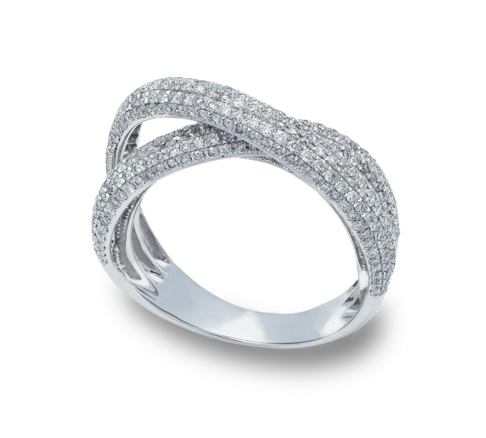 Zásnubný prsteň dvojriadkový z bieleho zlata zdobený stovkami diamantov