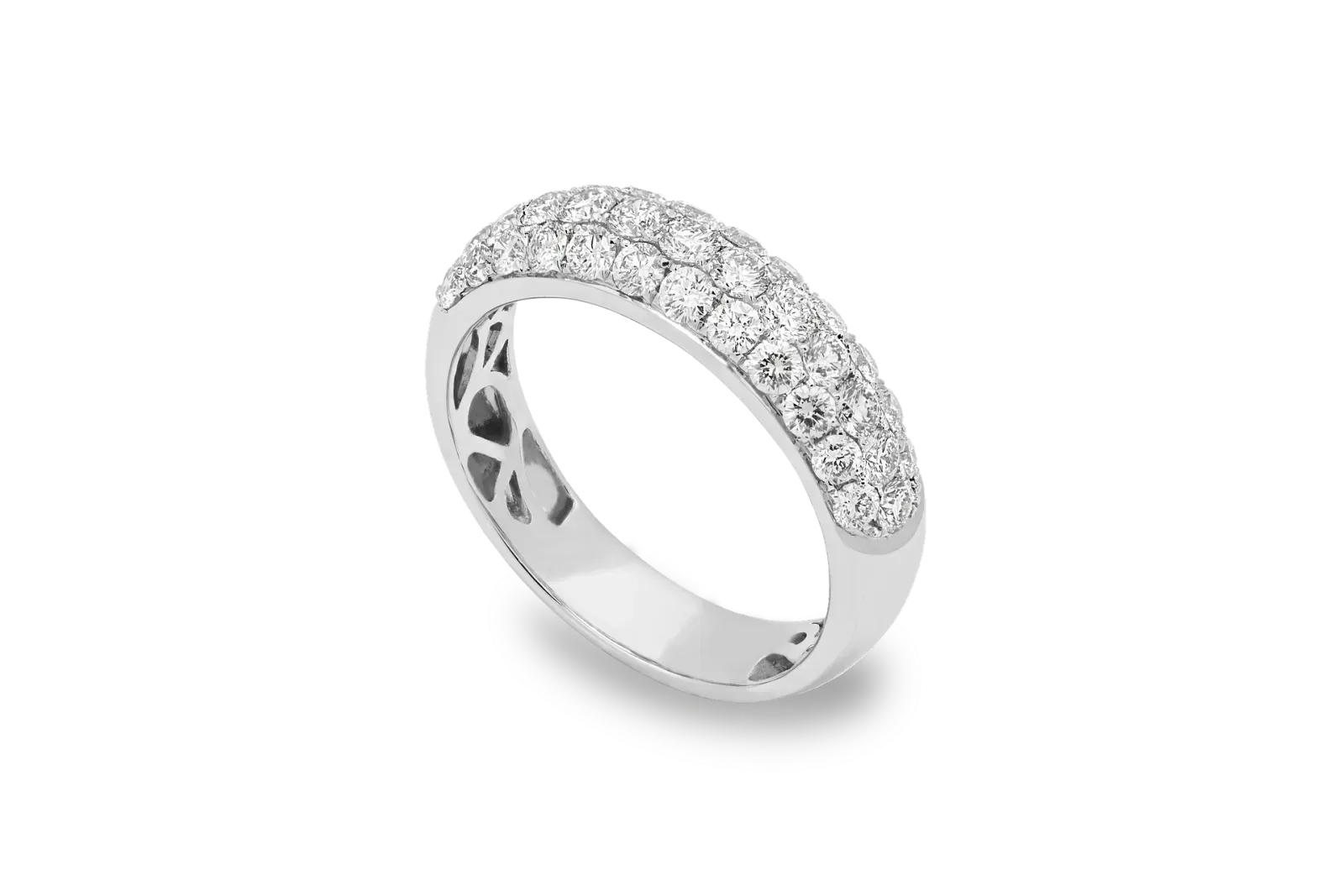 Zásnubný prsteň z bieleho zlata zdobený stovkami diamantov dvojriadkový